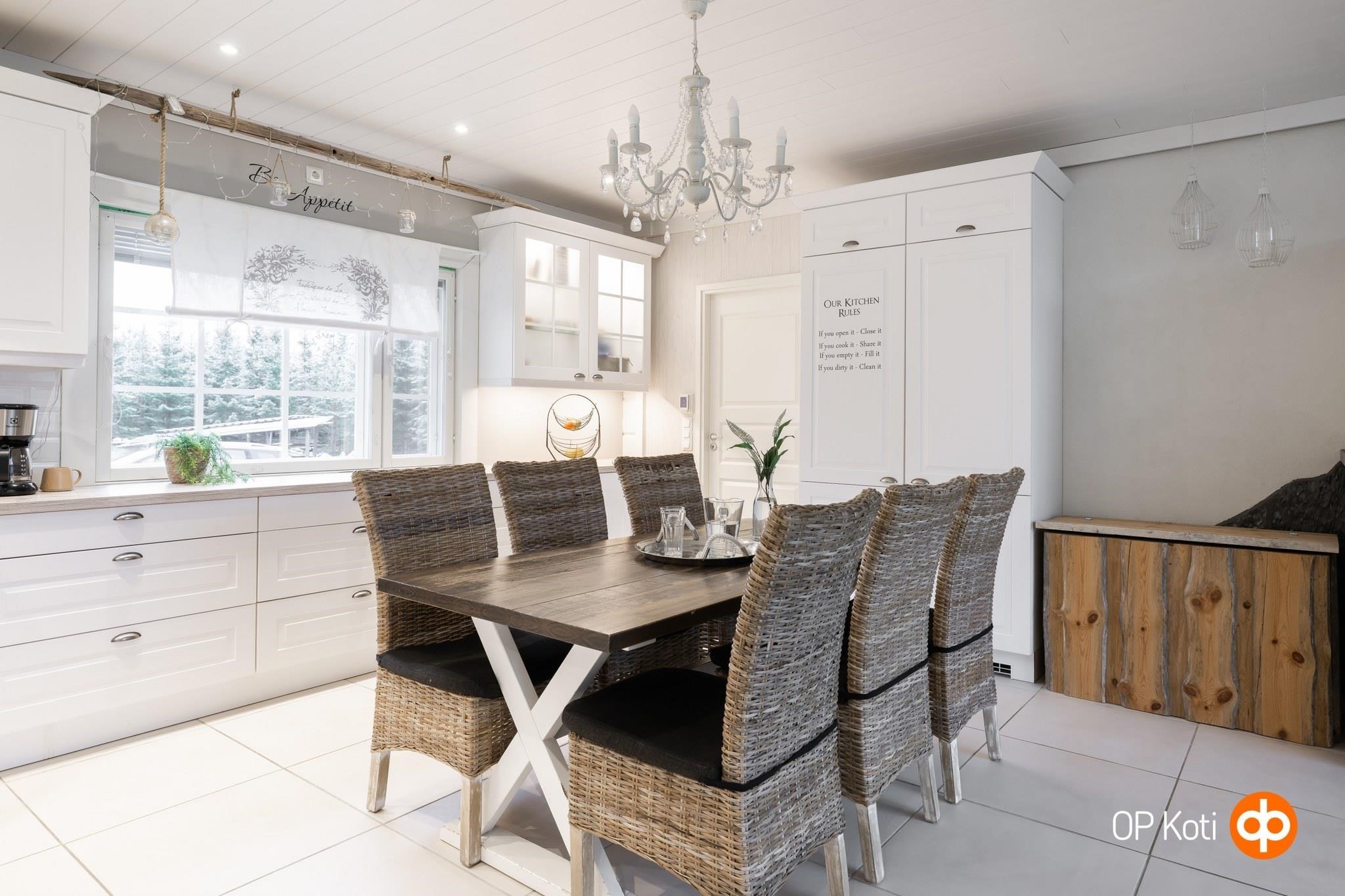 Talon sydän on tupakeittiö, jossa korkeat ikkunat tuovat luonnonvalon sisään ja tarjoavat näkymät vehreään ympäristöön. Keittiössä vallitsee käytännöllisyys, ja varustelu on toteutettu korkealaatuisilla materiaaleilla. Hirsitalon lämpöä korostavat varaava takka sekä kaikissa tiloissa oleva lattialämmitys, joka takaa mukavuuden ympäri vuoden. Hemmottelevaa spa-tunnelmaa huokuvat sauna ja kylpytilat ovat saluunahenkeä huokuvan tilan yhteydessä. Tilasta on käynti tilavalle terassille, joka toimii mainiosti vilvoitteluun sekä kesällä kutsuvana oleskelupaikkana. Vehreä ympäristö tarjoaa rauhallisen paikan unohtaa arjen kiireet, ja omalla 9 998 m² tontilla riittää tilaa omille projekteille.