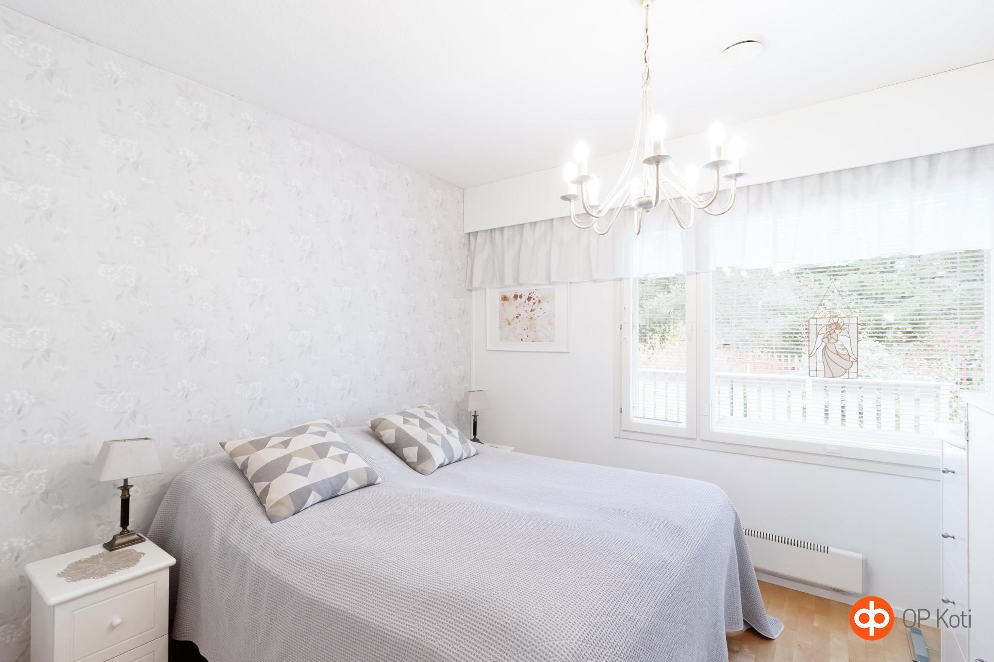 Keittiö: lattiassa parketti, seinät maalatut. Olohuone: lattiassa parketti, seinät tapetoidut / maali. Makuuhuone 1: lattiassa parketti, seinät tapetoidut. Komeroita. Makuuhuone 2: lattiassa parketti, seinät tapetoidut. Komeroita. Sauna: lattiassa laatta, seinät paneloidut. Kylpyhuone: lattia ja seinät laatoitetut. Ikkuna. Eteinen: lattiassa parketti, seinät maalatut. Komeroita.