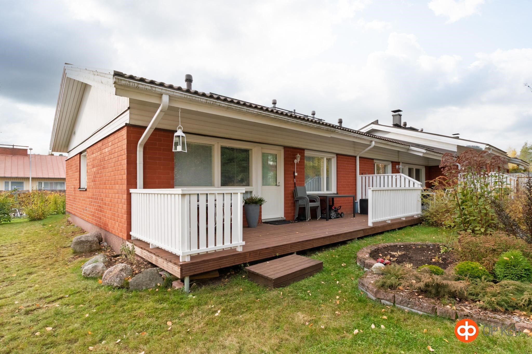 Hyväkuntoinen saunallinen rivitalokolmio Pohjantiellä. Päätyhuoneisto, suojaisalla takapihalla terassi. Etupihalla autokatospaikka. Lähellä keskustaa, koulua ja uimahallia. Pyydä esittely!
