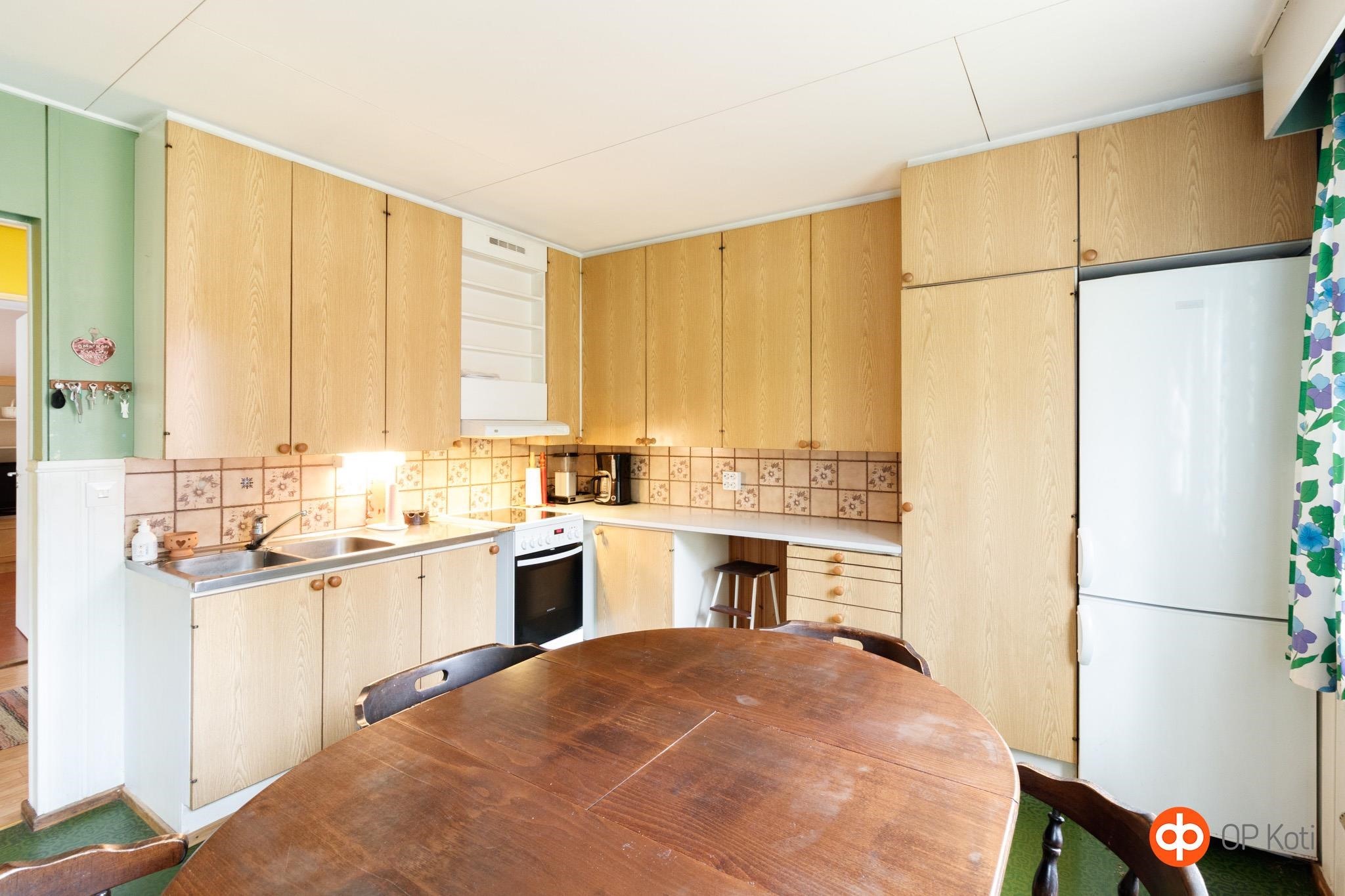 - Jääkaappipakastin, keraaminen liesi, liesituuletin, kaapistot.