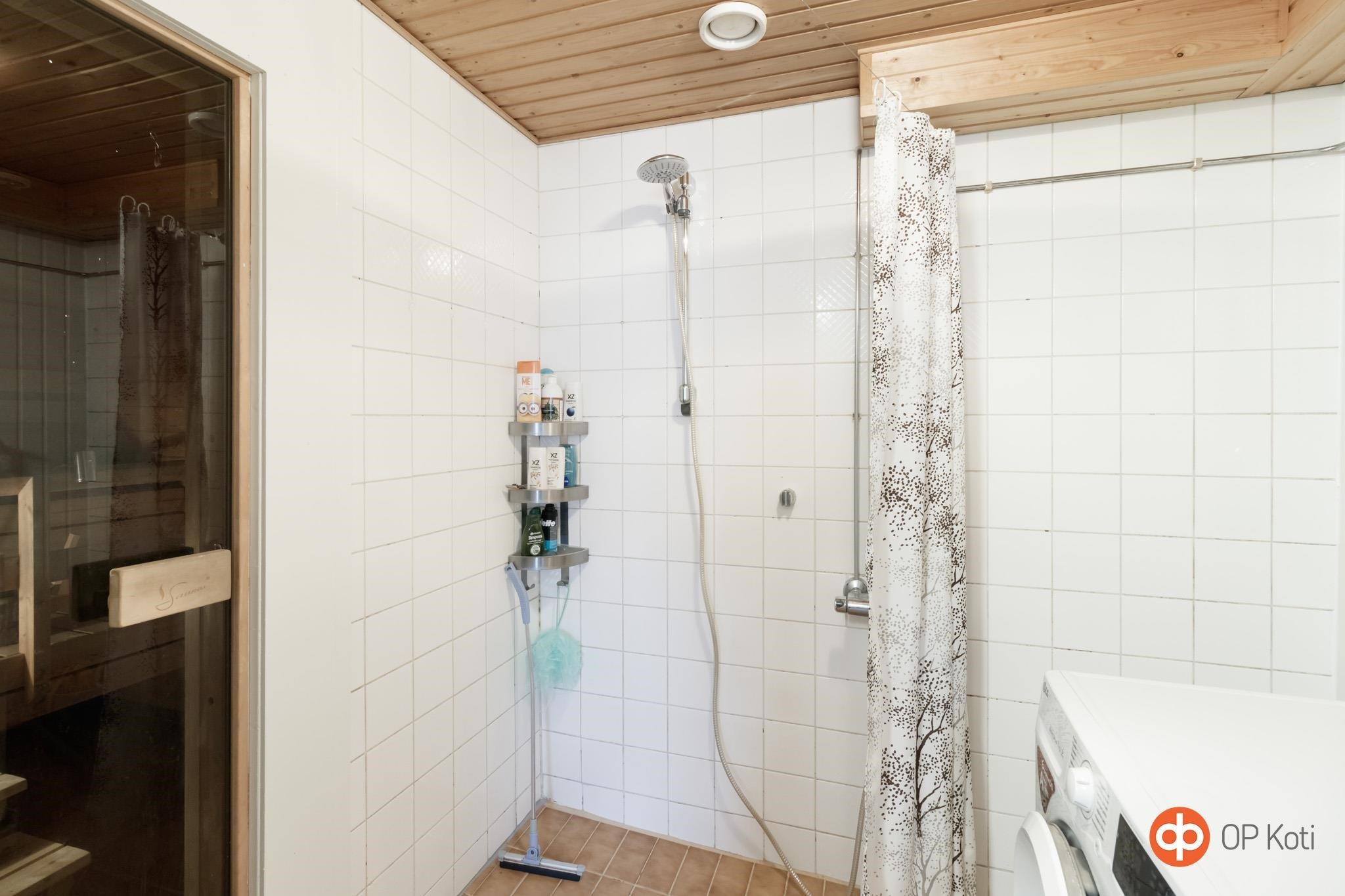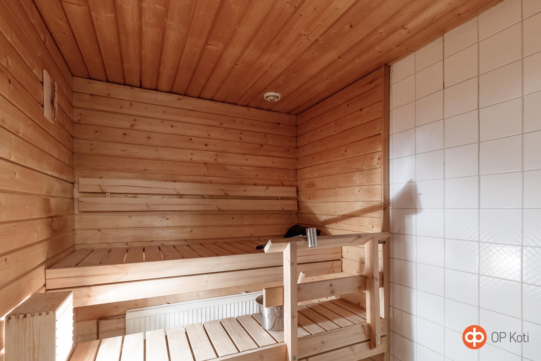 - Sauna, sähkökiuas, kylpyhuone, erillinen wc, suihku, peilikaappi, pesukoneliitäntä. Kylpyhuone remontoitu n. 1988, kosteuskartoitus tehty vuonna 2011