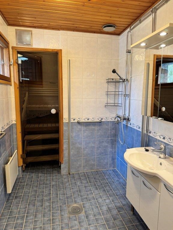 - Sauna, sähkökiuas, erillinen wc, suihku, pesukoneliitäntä, lattialämmitys.
