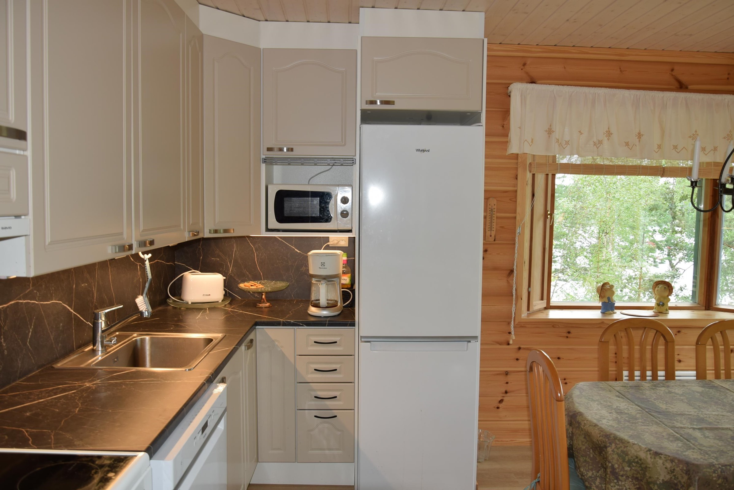 - Jääkaappipakastin, keraaminen liesi, liesituuletin, astianpesukone, kaapistot, kiinteät valaisimet.