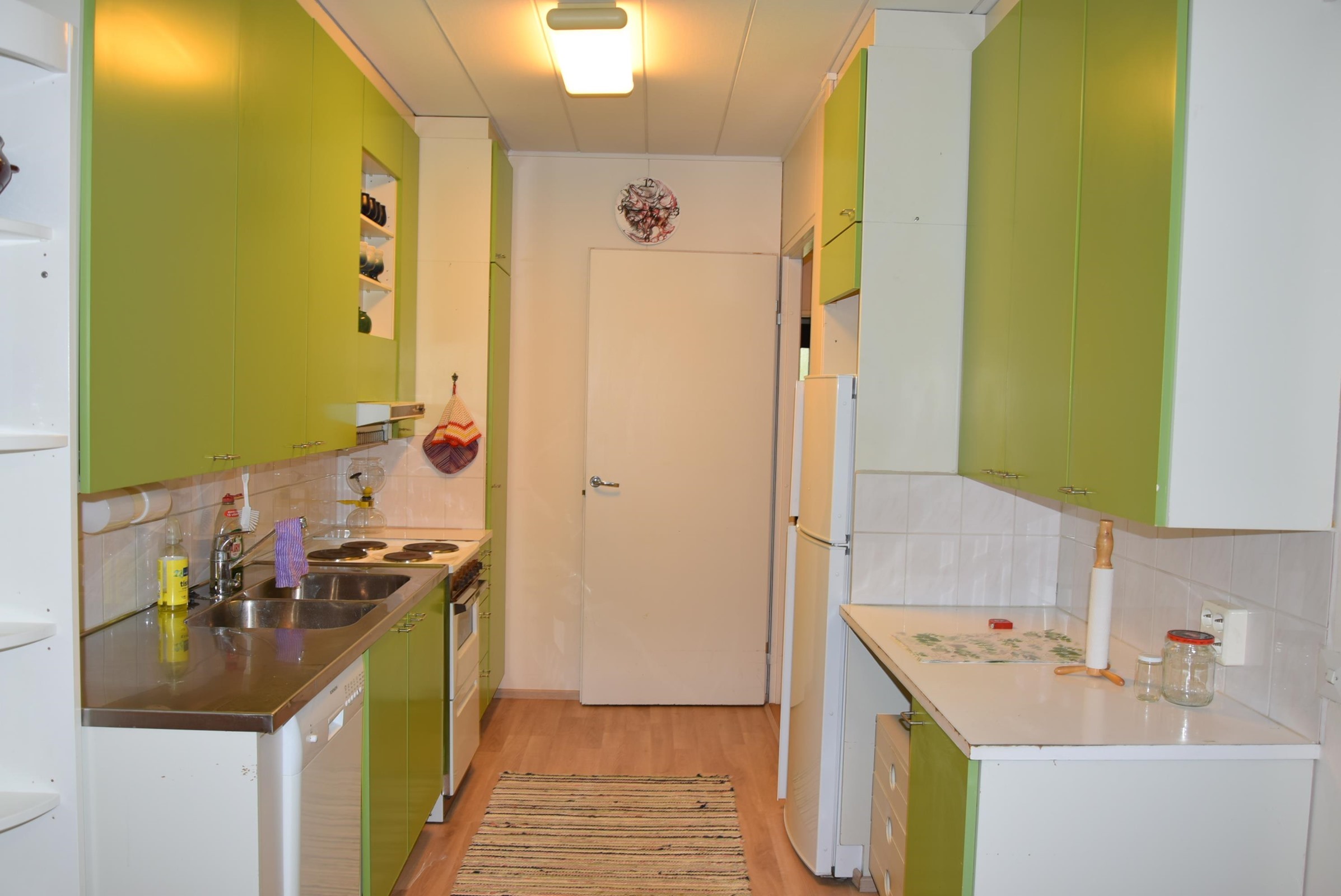 - Jenkkikaappi, sähköliesi, liesituuletin, astianpesukone, kaapistot, kiinteät valaisimet.