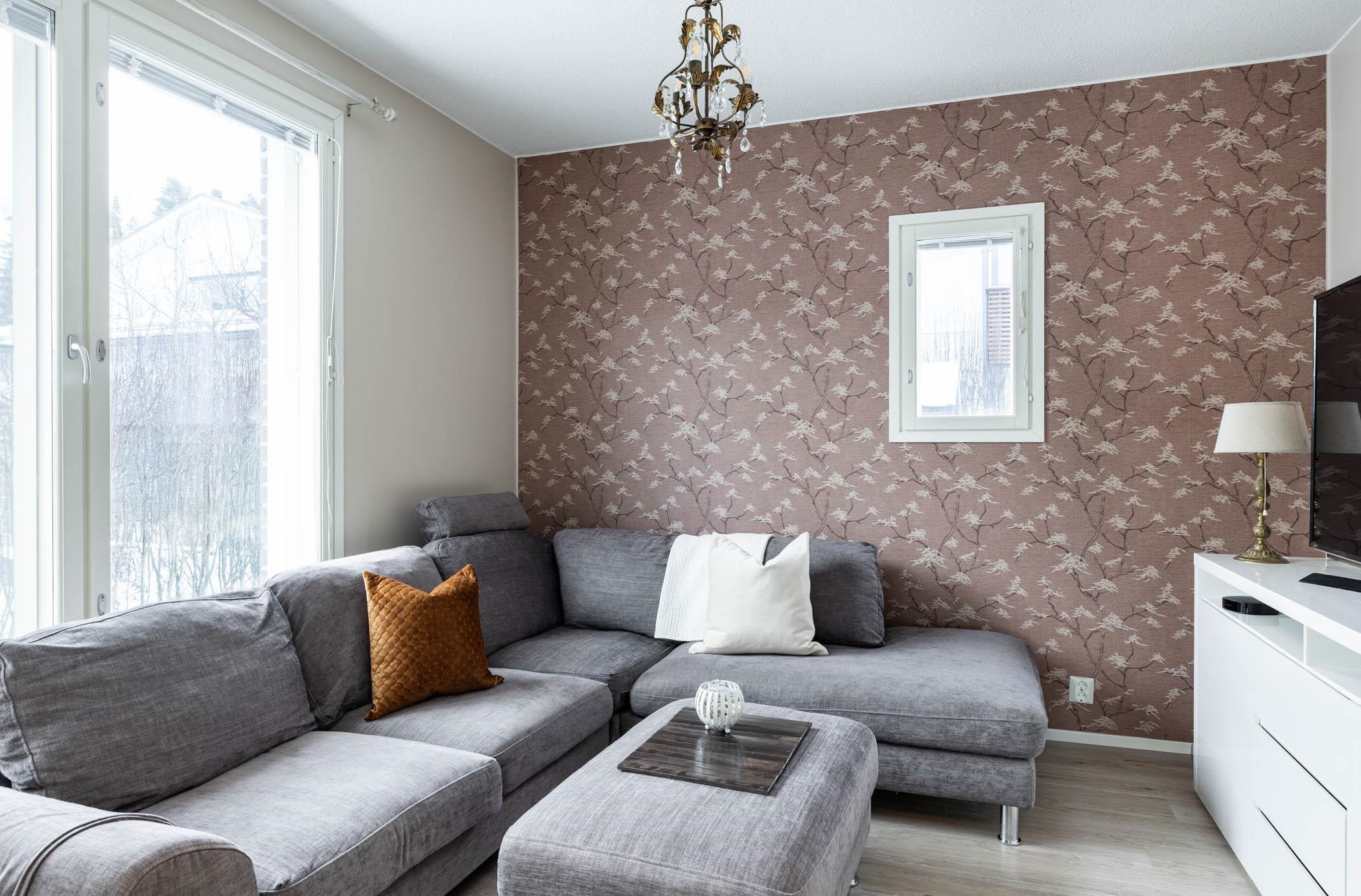 Koti lämpiää kaukolämmöllä, mikä takaa mukavuuden ja energiatehokkuuden.
