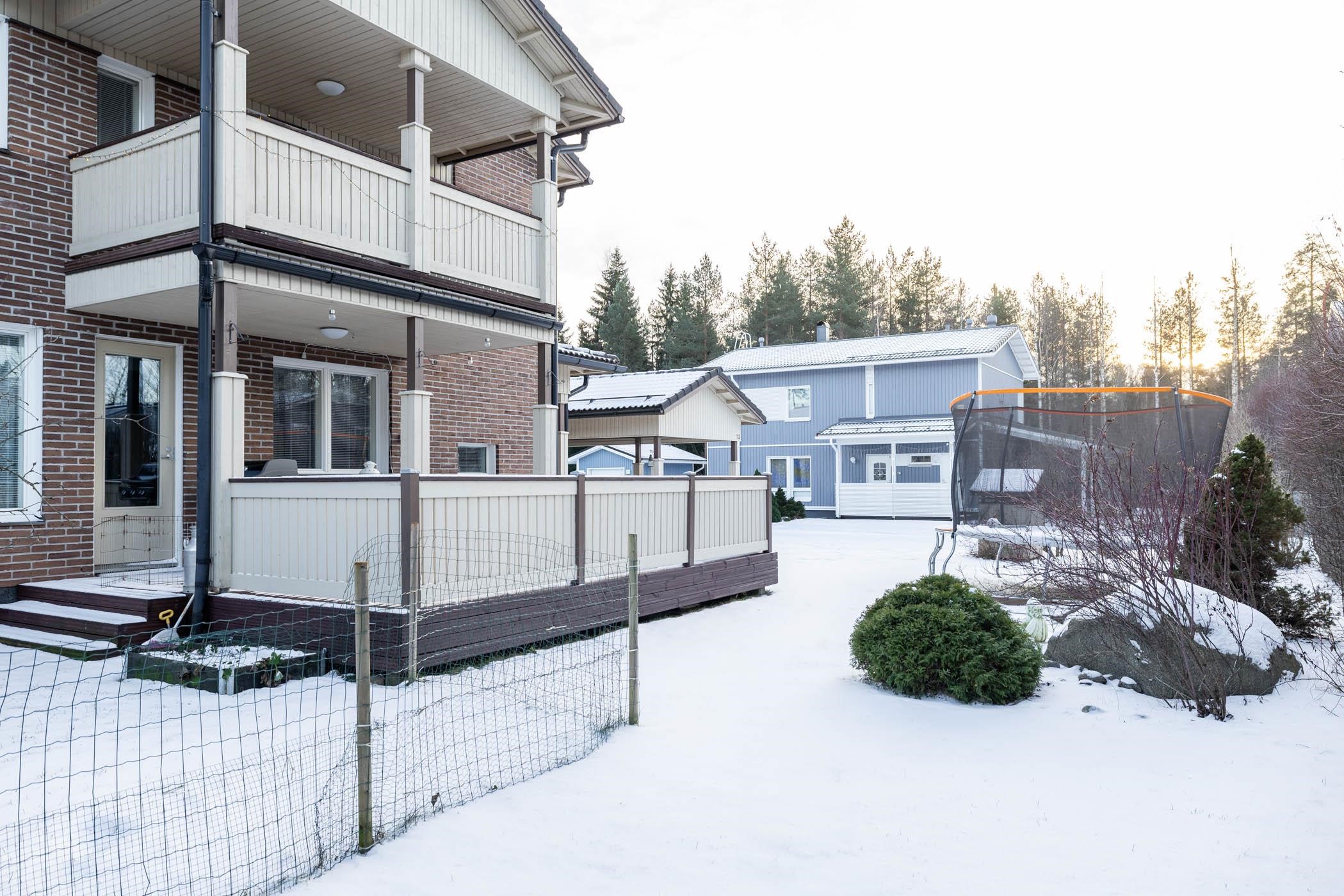Autokatos ja tilava lämmin varasto autokatoksen yhteydessä helpottavat arkea.