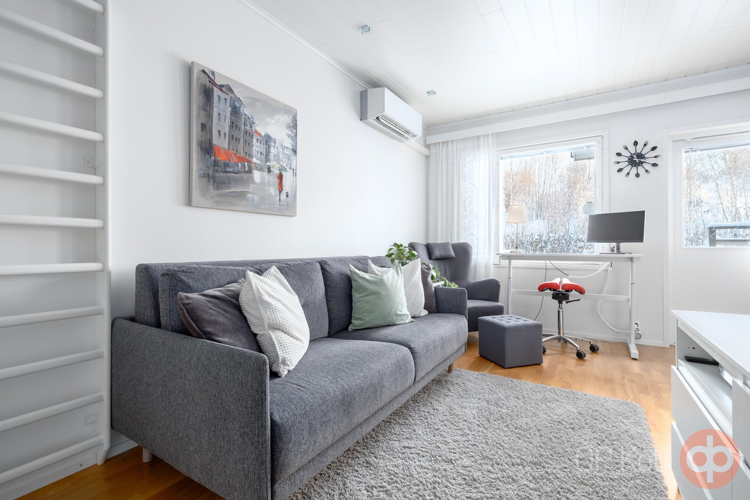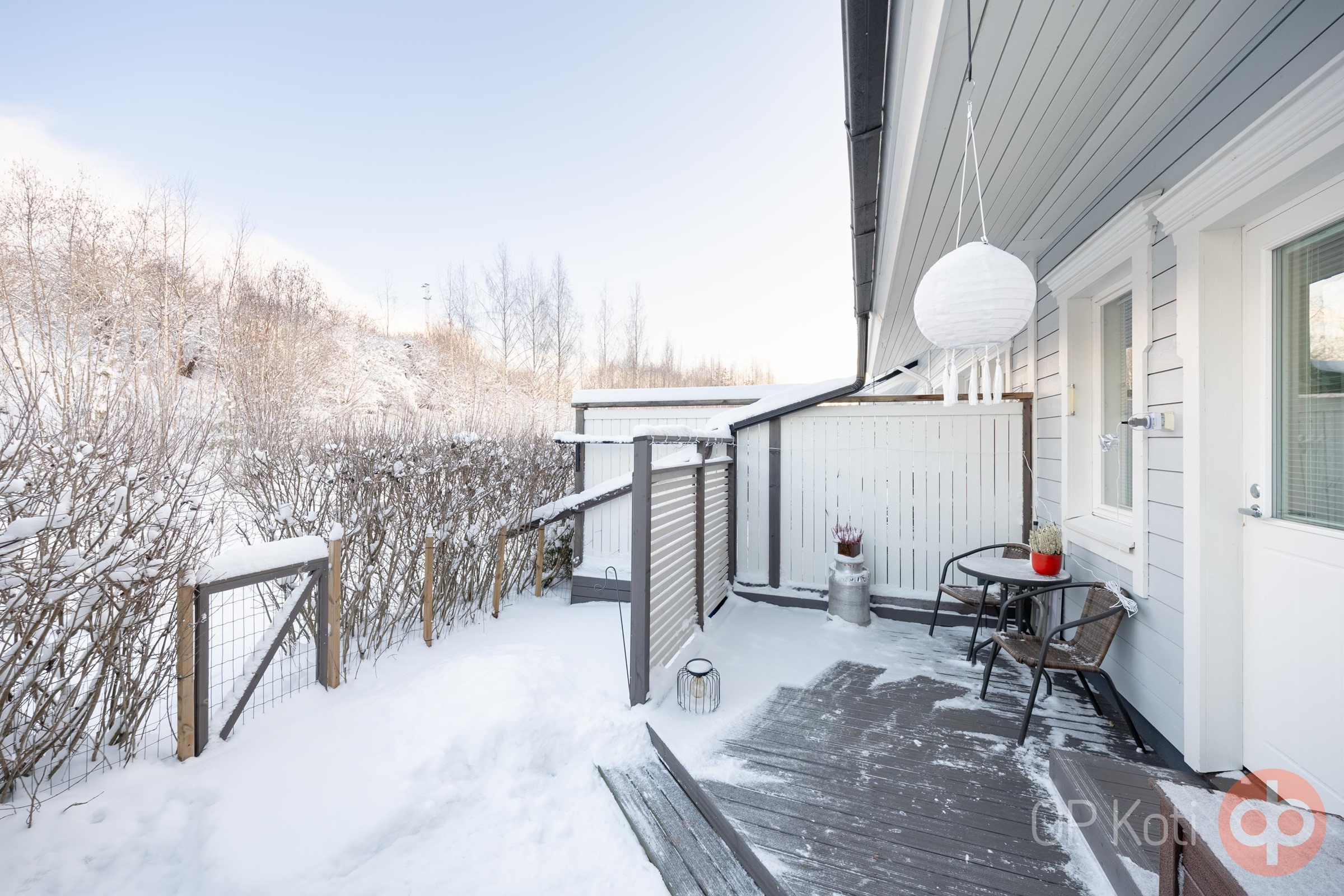 Asunnossa on ilmalämpöpumppu, joka tuo mukavuutta sekä lämmitykseen että kesähelteiden viilennykseen. Pohjoisen puolelle avautuva suojaisa takapiha ja viihtyisä terassi tarjoavat rauhallisen paikan rentoutumiseen.