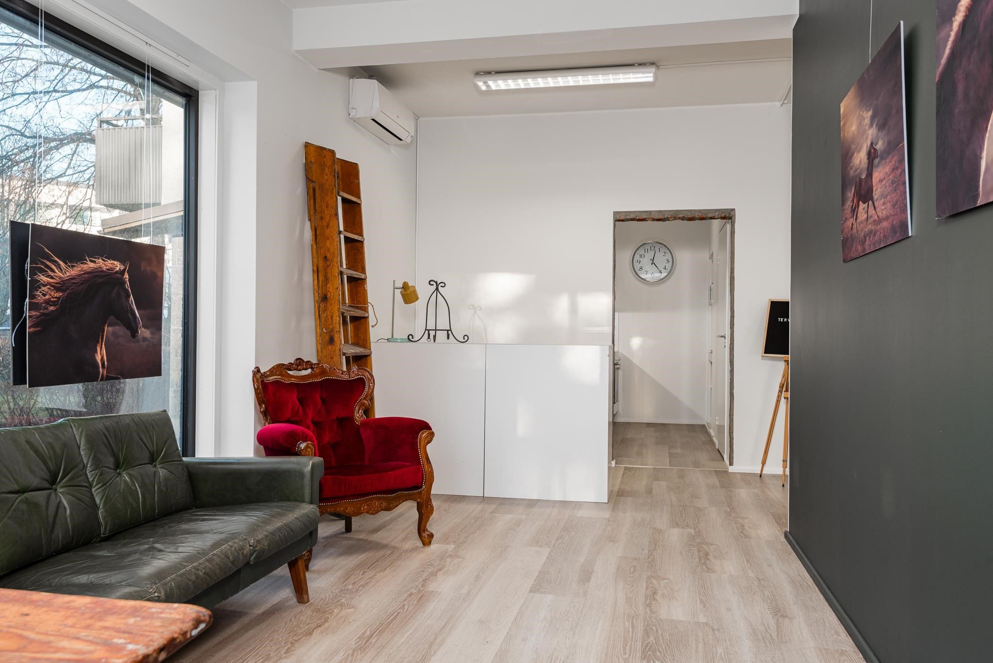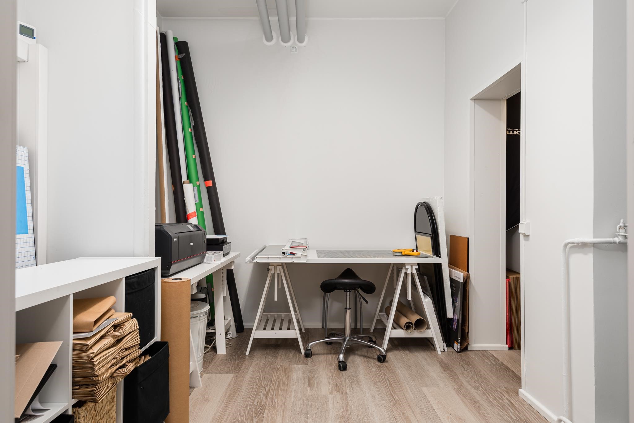 Liiketilan sisätilat koostuvat kahdesta huoneesta, keittiöstä, varastosta ja taustatilasta. Tilaan on kolme sisäänkäyntiä, mikä mahdollistaa tilan jakamisen kätevästi eri osastoiksi tai toimintojen mukaan. Vinyylilankkulattiat tuovat tyylikkyyttä ja käytännöllisyyttä arkeen. Lisäksi kaksi ilmalämpöpumppua varmistavat miellyttävän työskentelyilman ympäri vuoden. Lämmitys sisältyy vuokraan.