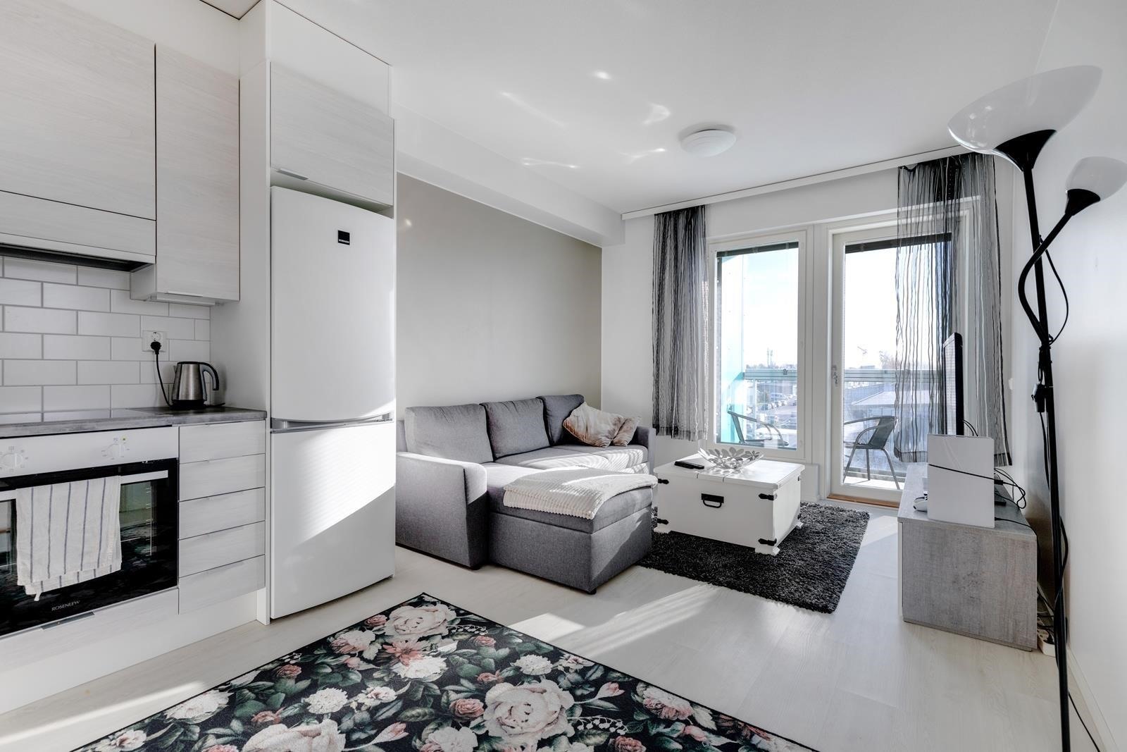 Kaksio Porin Kampuksessa! Valoisa, erittäin siisti ja tilavantuntuinen asunto neljännessä kerroksessa. Erillinen makuuhuone ja iso kylpyhuone tuovat arkeen mukavuutta ja lasitettu parveke lisää asumisviihtyvyyttä pitkälle syksyyn. Vuonna 2020 rakennettu talo sijaitsee keskeisellä paikalla- matkakeskus ja SAMK viereässä ja keskustaan lyhyt matka. Eteisessä runsaasti kaappitilaa ja hissi kulkee maantasalta. Heti vapaa.