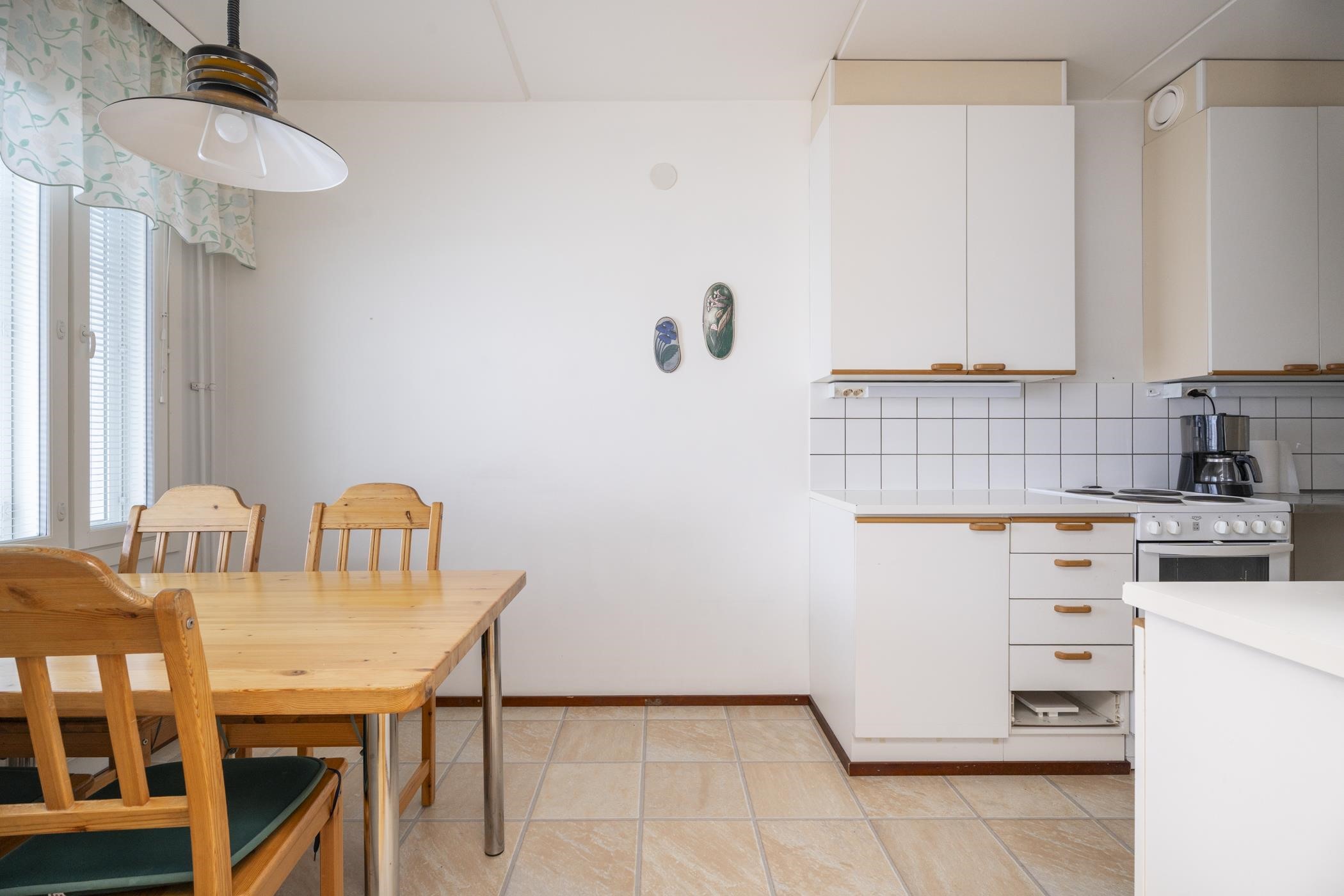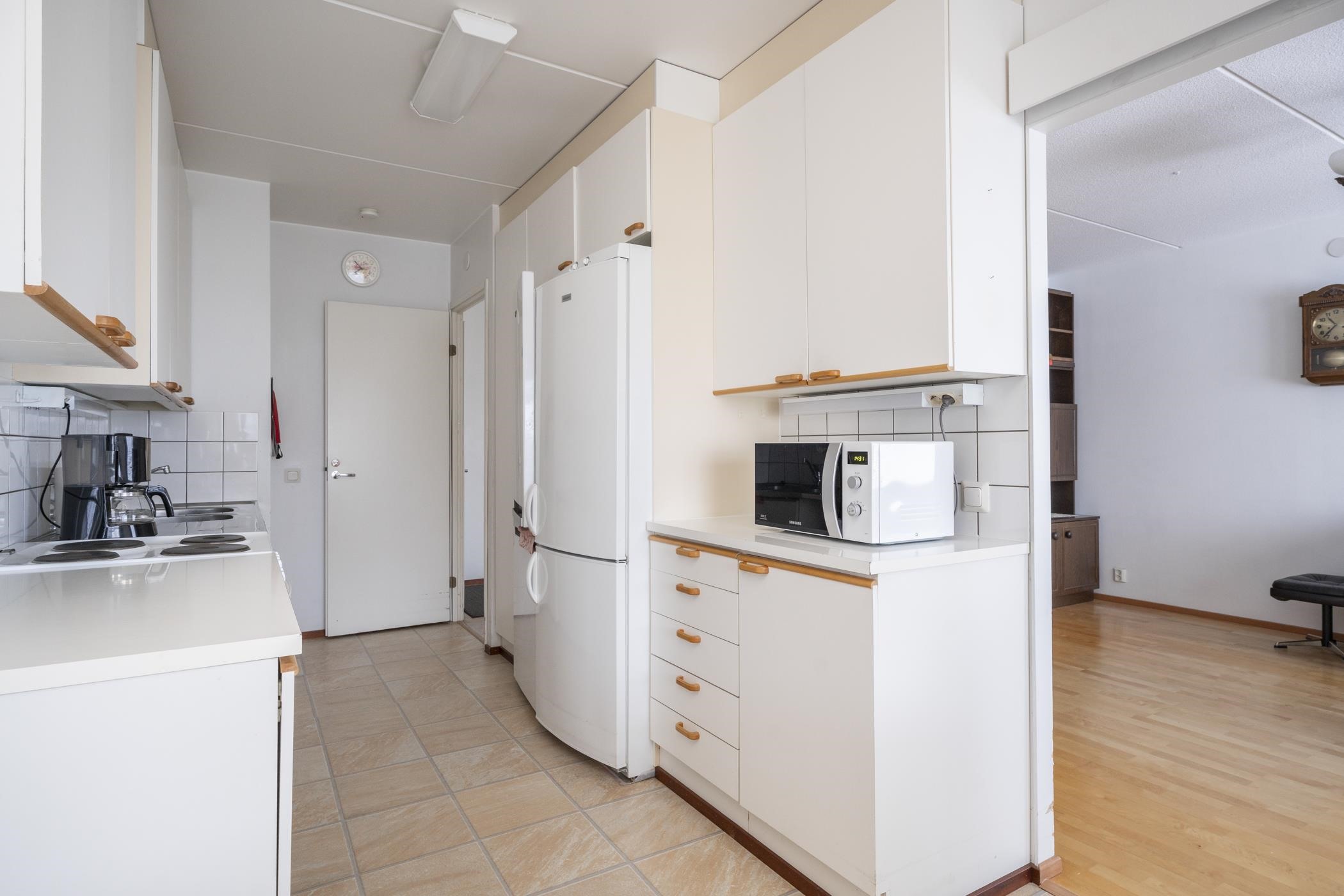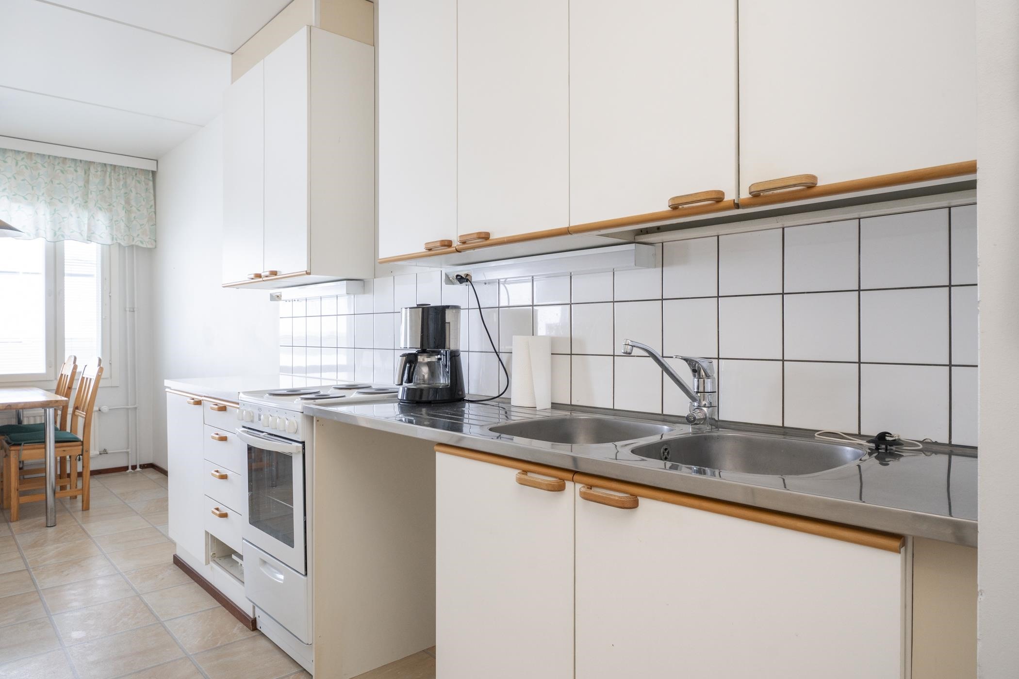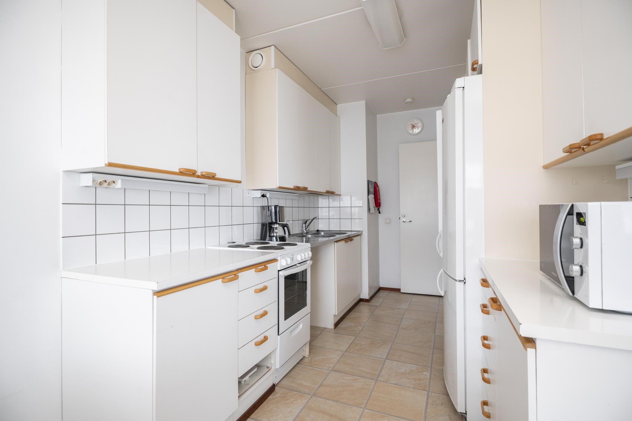 - Keittiössä varustaana on jääkaappipakastin x2, sähköliesi (vuonna 2012 uusittu) ja kiinteät valaisimet. Valmius astianpesukoneelle.