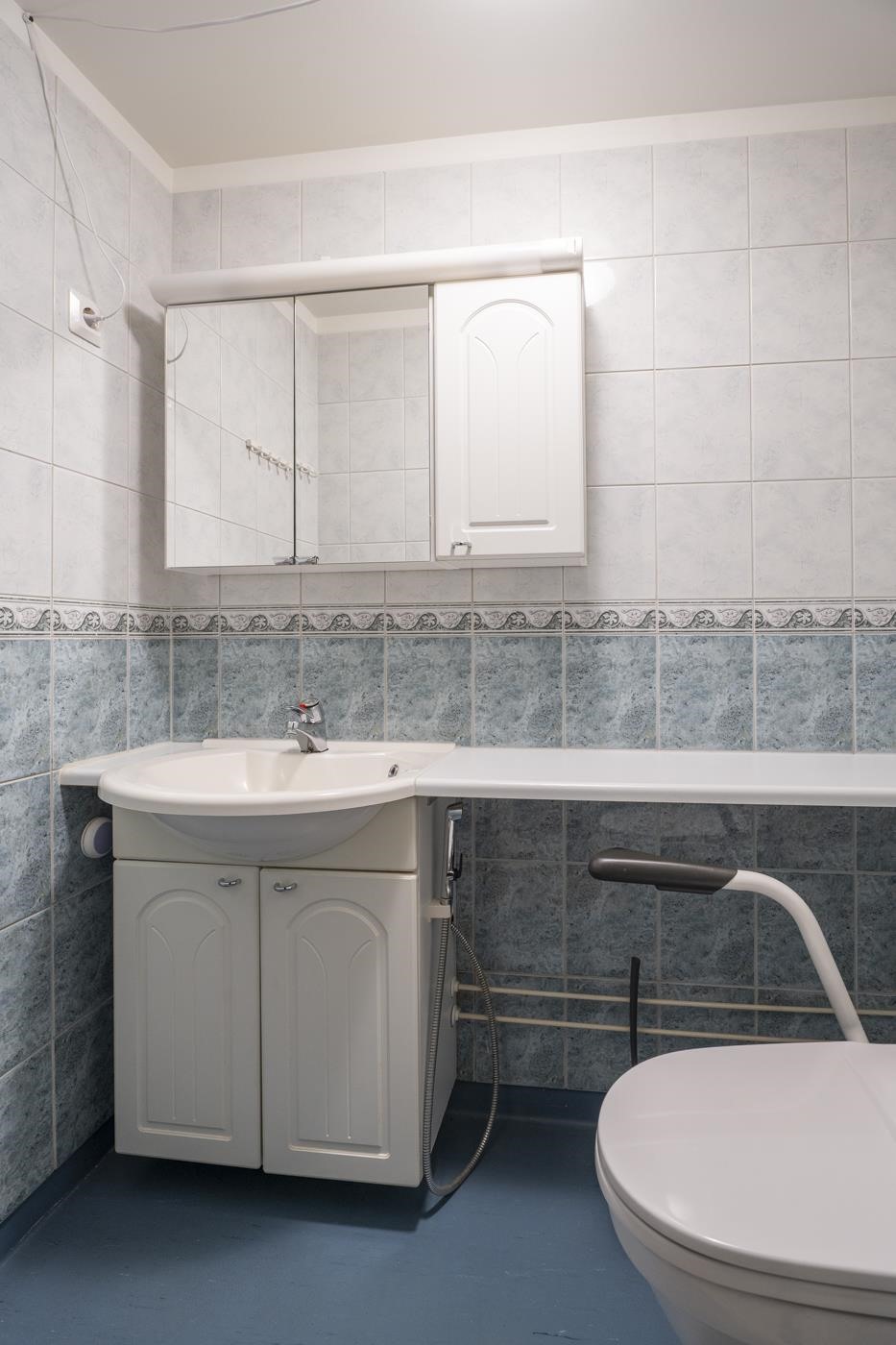 - Saunassa sähkökiuas on uusittu 2012. Kylpyhuoneessa on suihku, peili, siivouskaappi, pesukoneliitäntä ja kiinteät valaisimet. Erillinen wc:ssä on allaskaappi, taso, peilikaappi, wc-istuin (korotettu malli / invakaiteet).