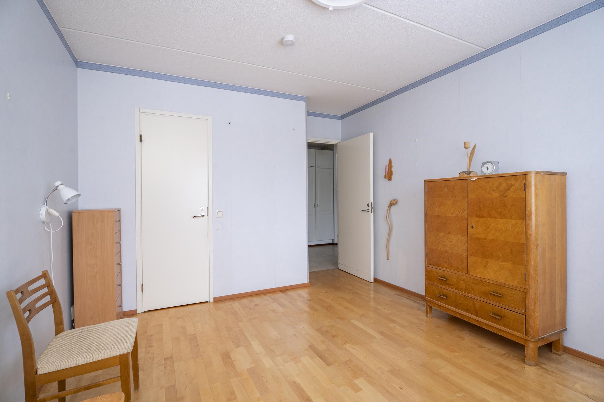 Keittiö: Laminaatti, maali. Olohuone: Parketti, maali. Makuuhuone 1: Parketti, tapetti. Makuuhuone 2: Parketti, maali. Kylpyhuone: Muovimatto, muovi. Eteinen: laminaatti, maali. Wc: Muovimatto, kaakeli. Vaatehuone: Muovimatto, maali.