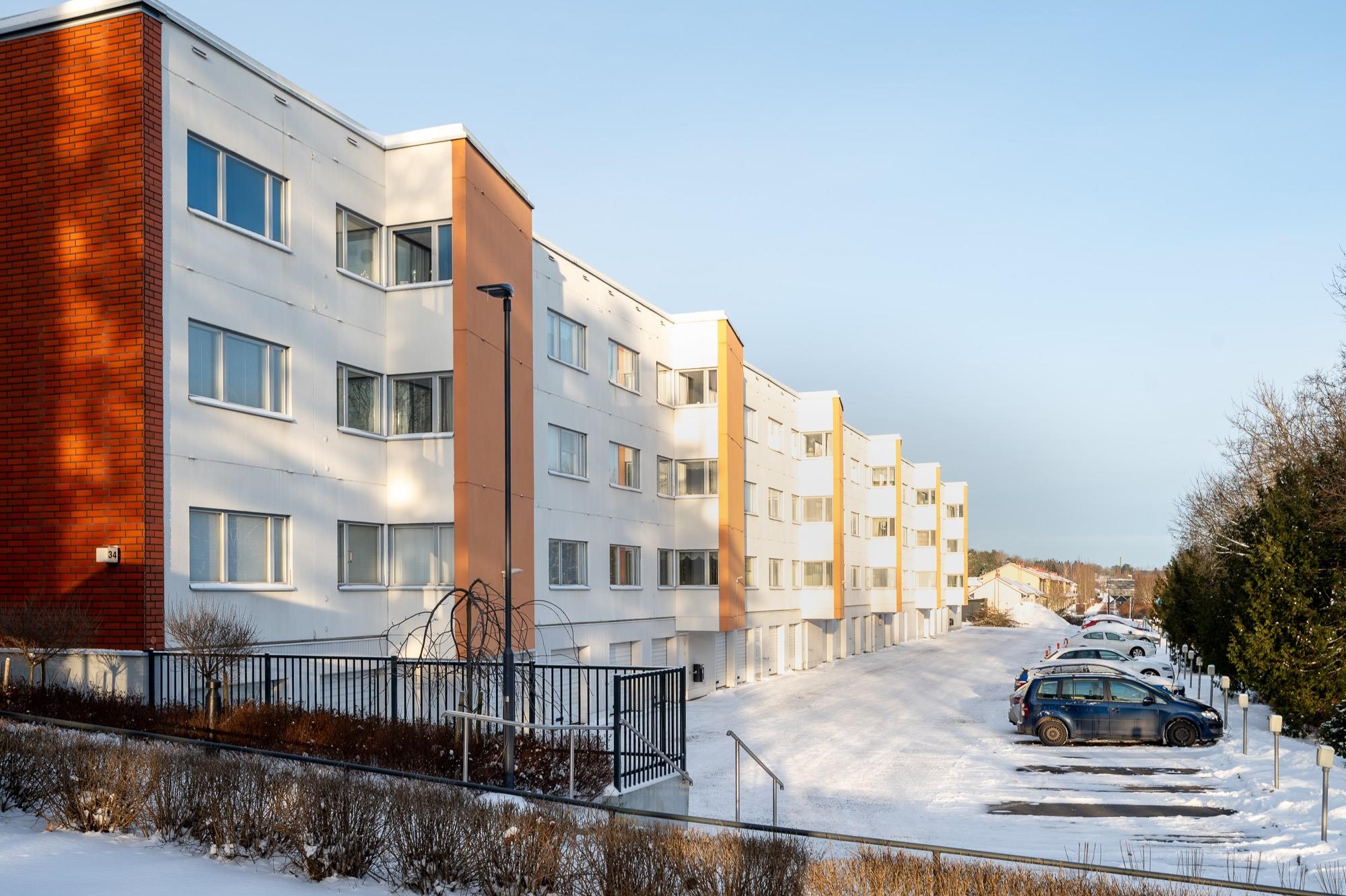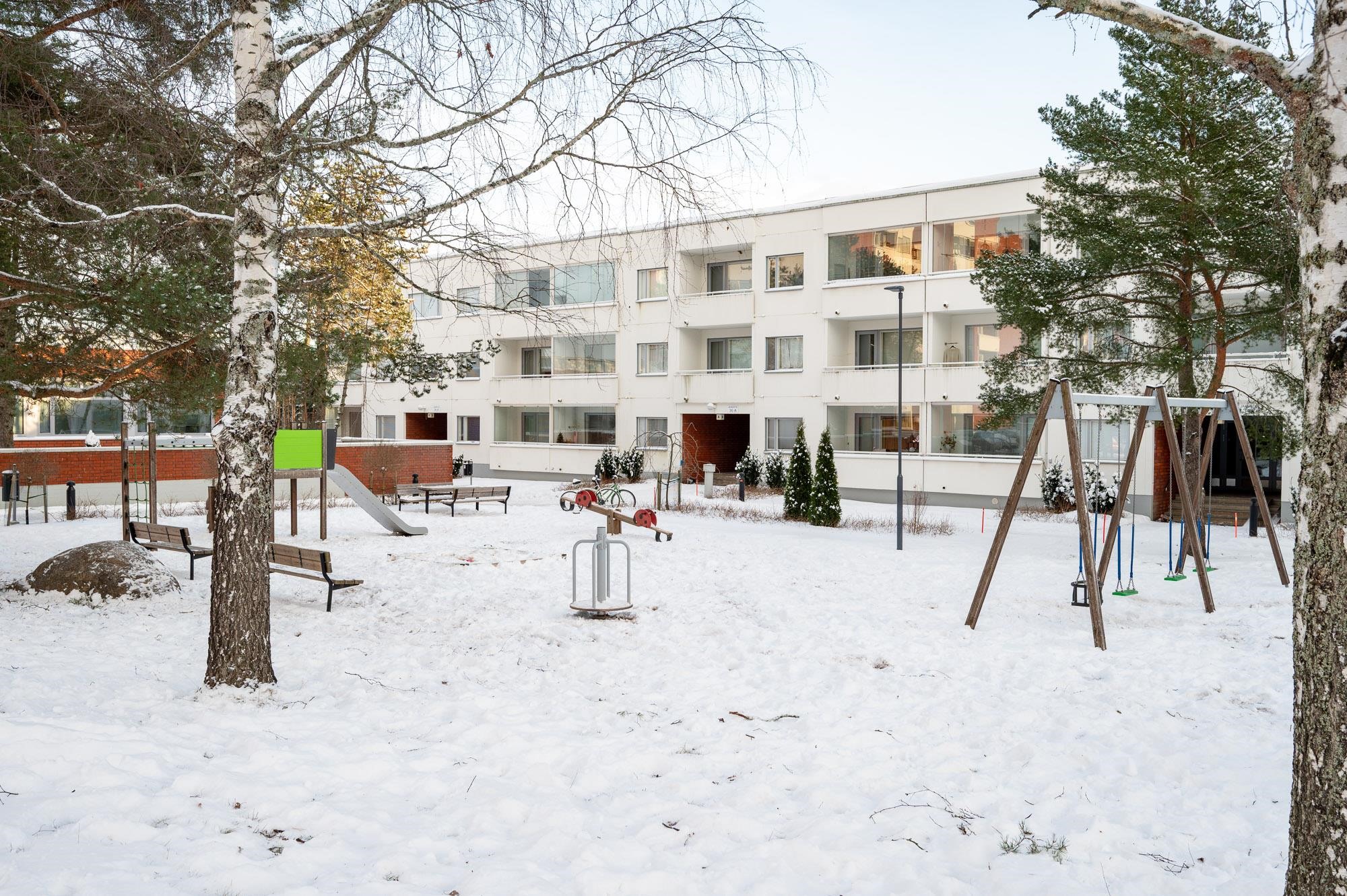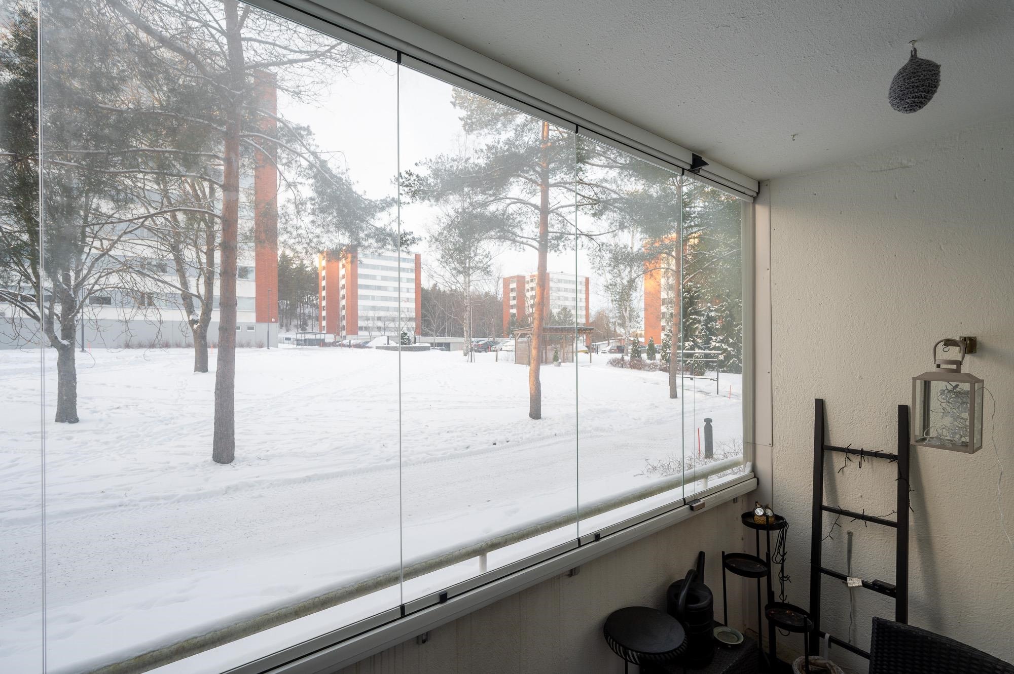 - Parveke lännen ja luoteen välillä sisäpihalle päin, läpitalon huoneisto
