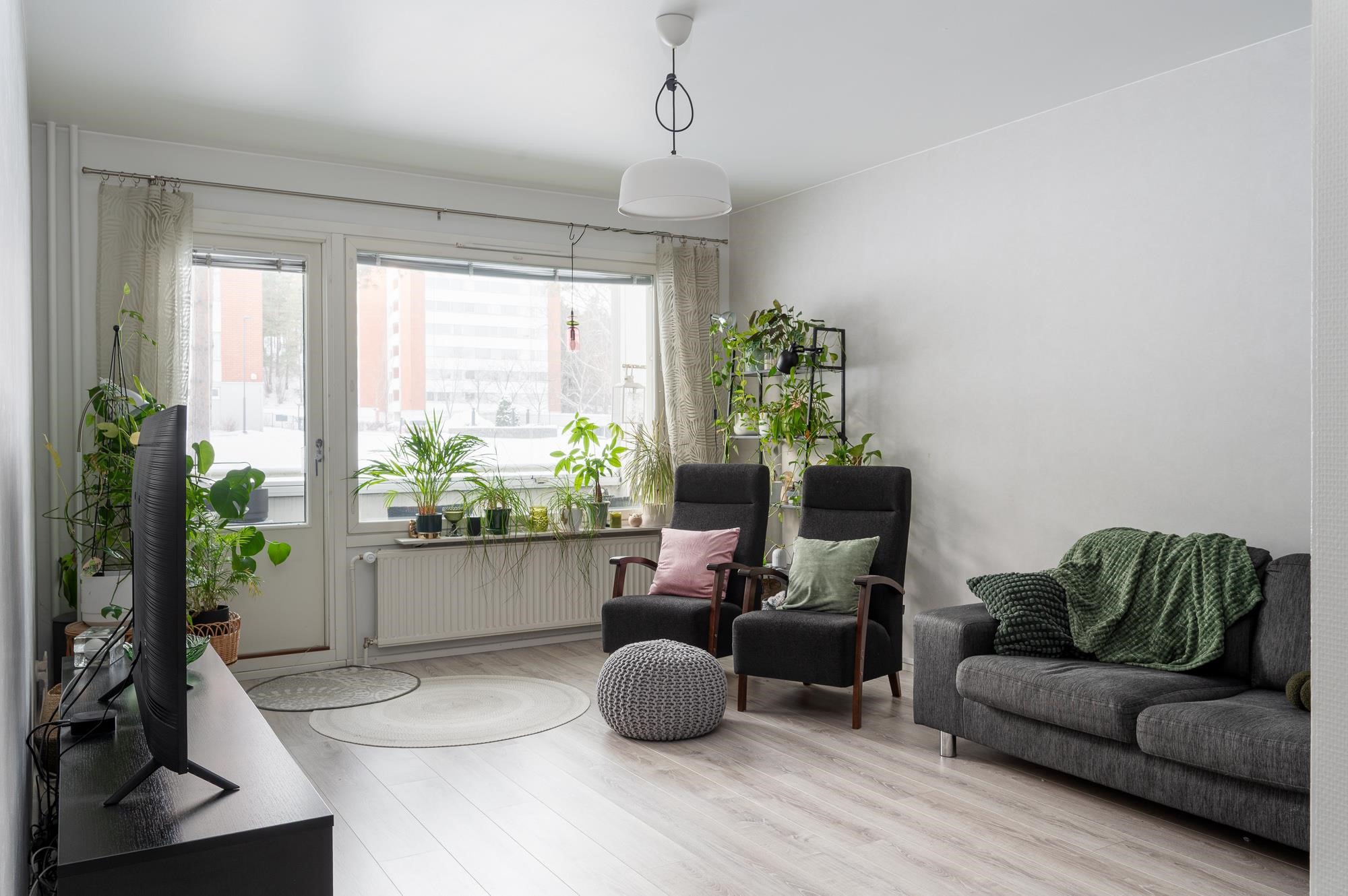 Tervetuloa tutustumaan tähän kodikkaaseen ja tilavaan asuntoon, joka tarjoaa mukavan ja toimivan asuinympäristön rauhallisessa ja huolletussa taloyhtiössä. Asunto sijaitsee ensimmäisessä kerroksessa ja avautuu läpitalon, tarjoten kauniit näkymät sisäpihan suuntaan, sekä Jaaninlaakson lähivirkistysalueelle. Lasitettu parveke tuo lisätilaa ja mahdollisuuden nauttia ulkoilmasta lähes ympäri vuoden.