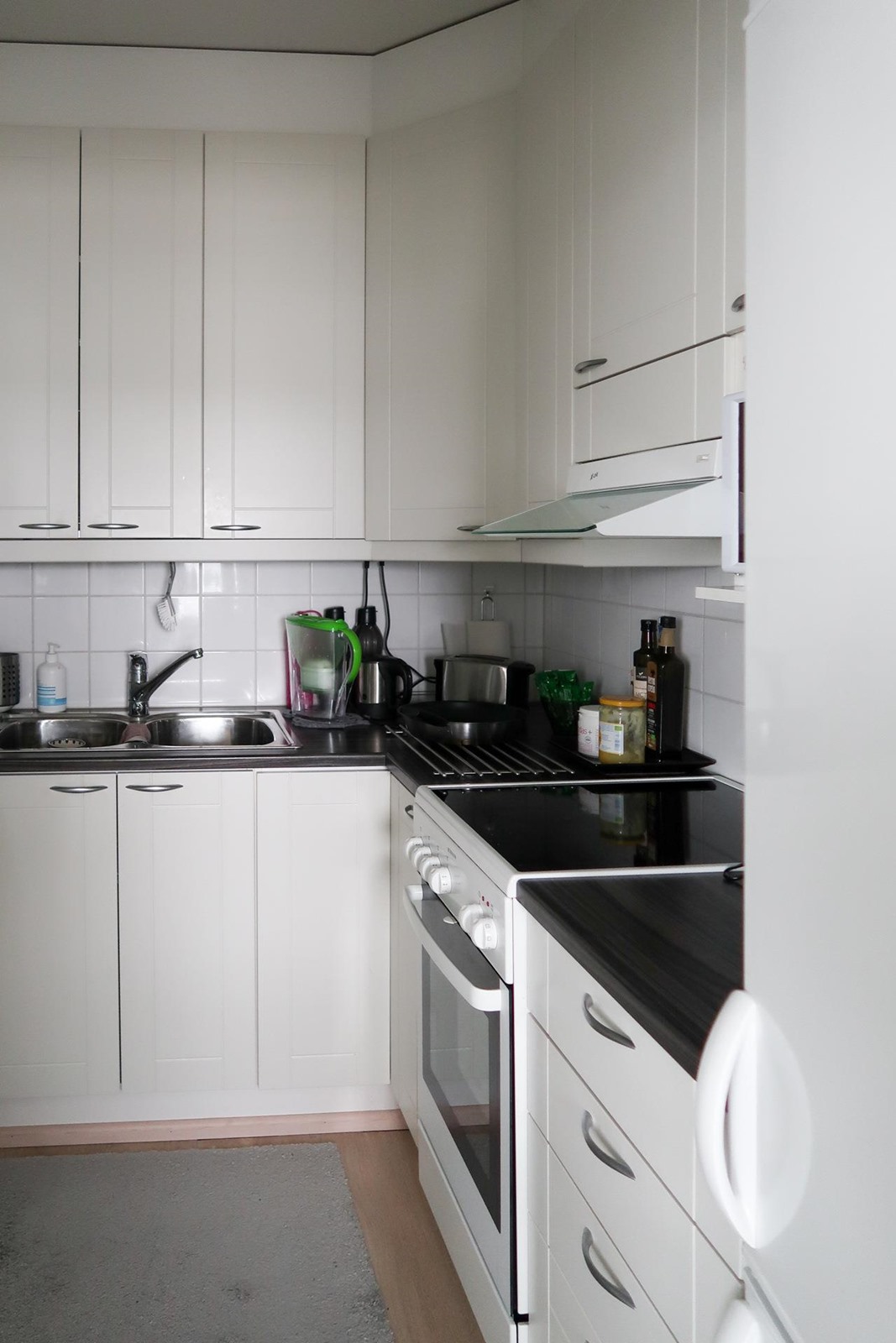 - Jääkaappipakastin, sähköliesi, liesituuletin, kaapistot.