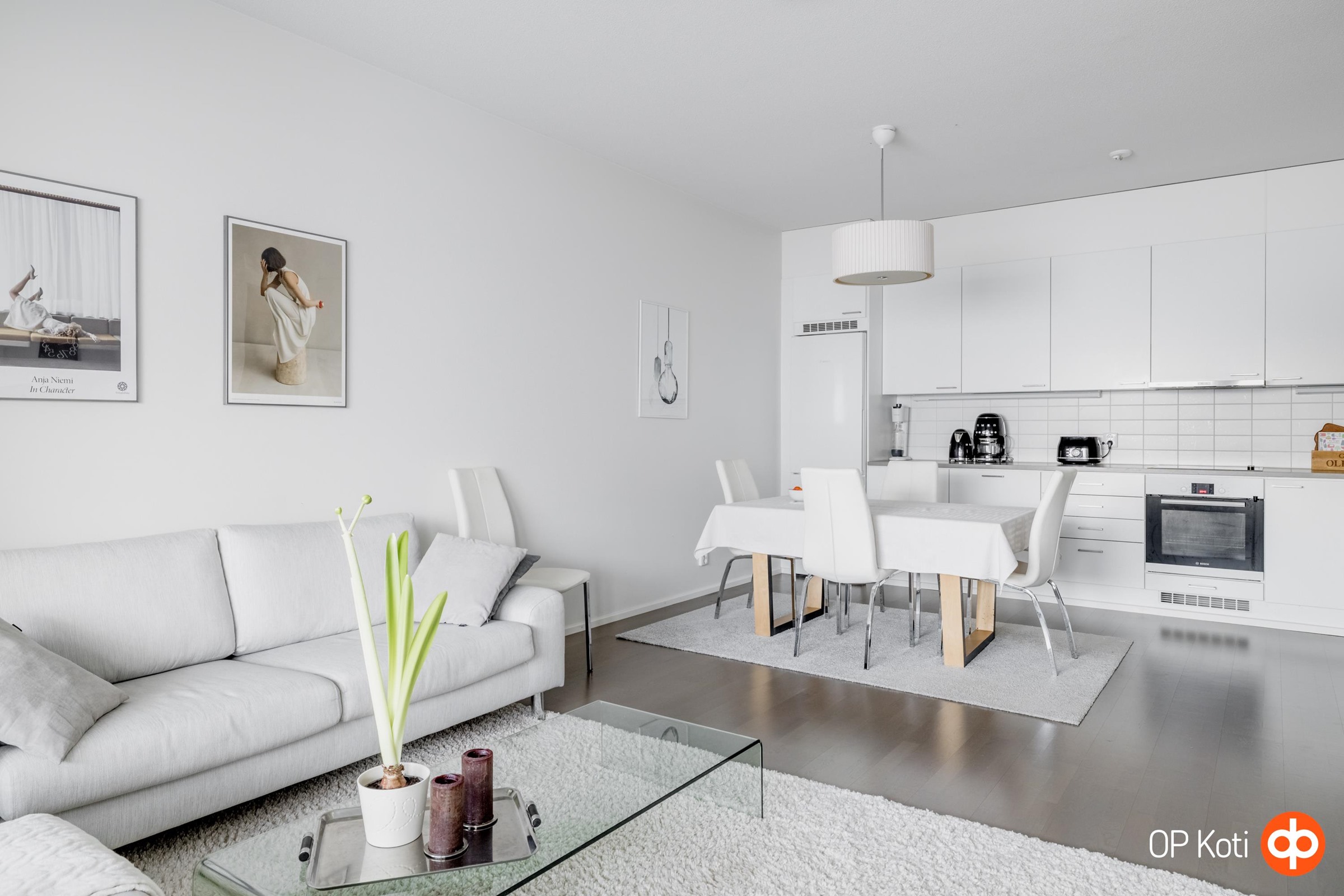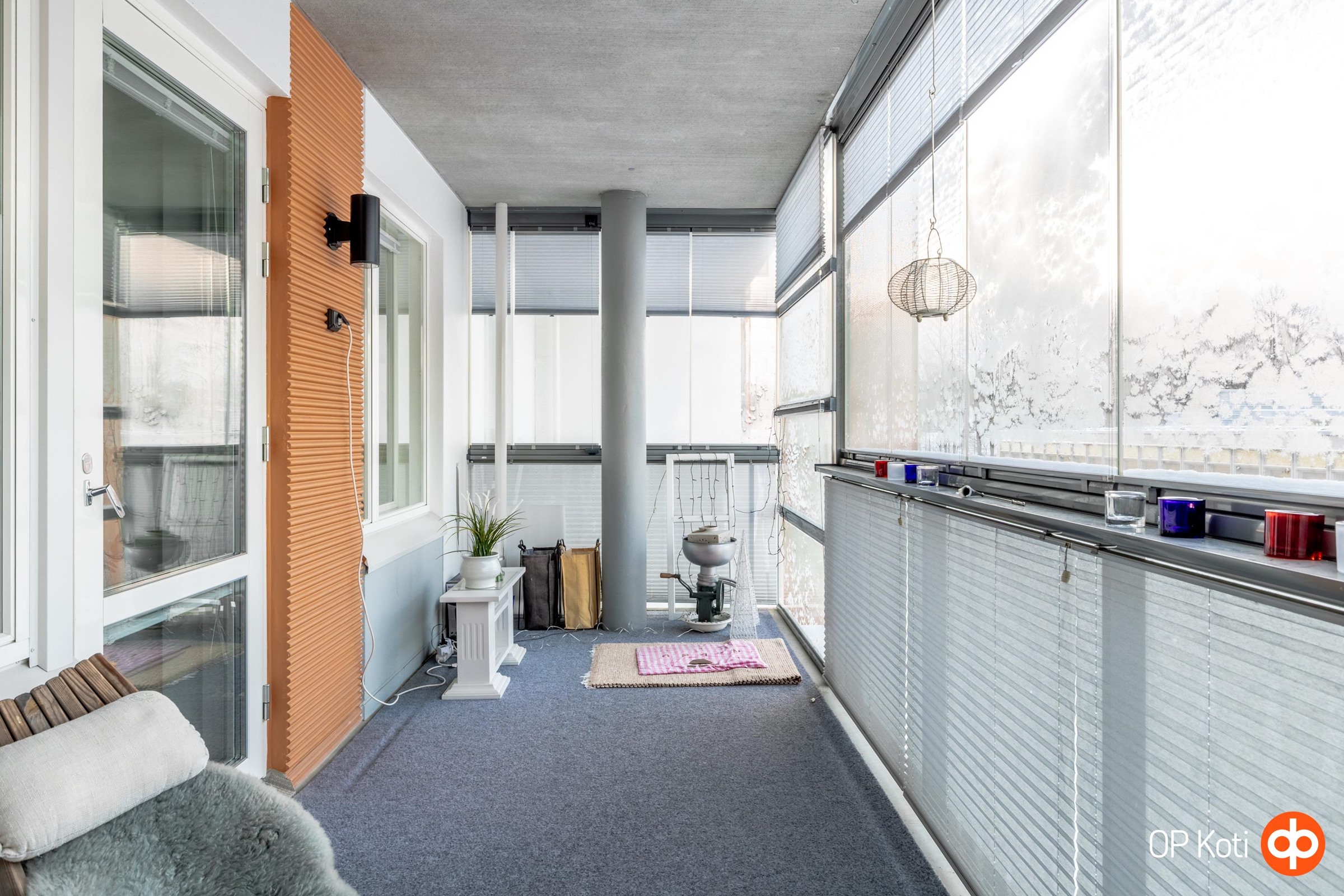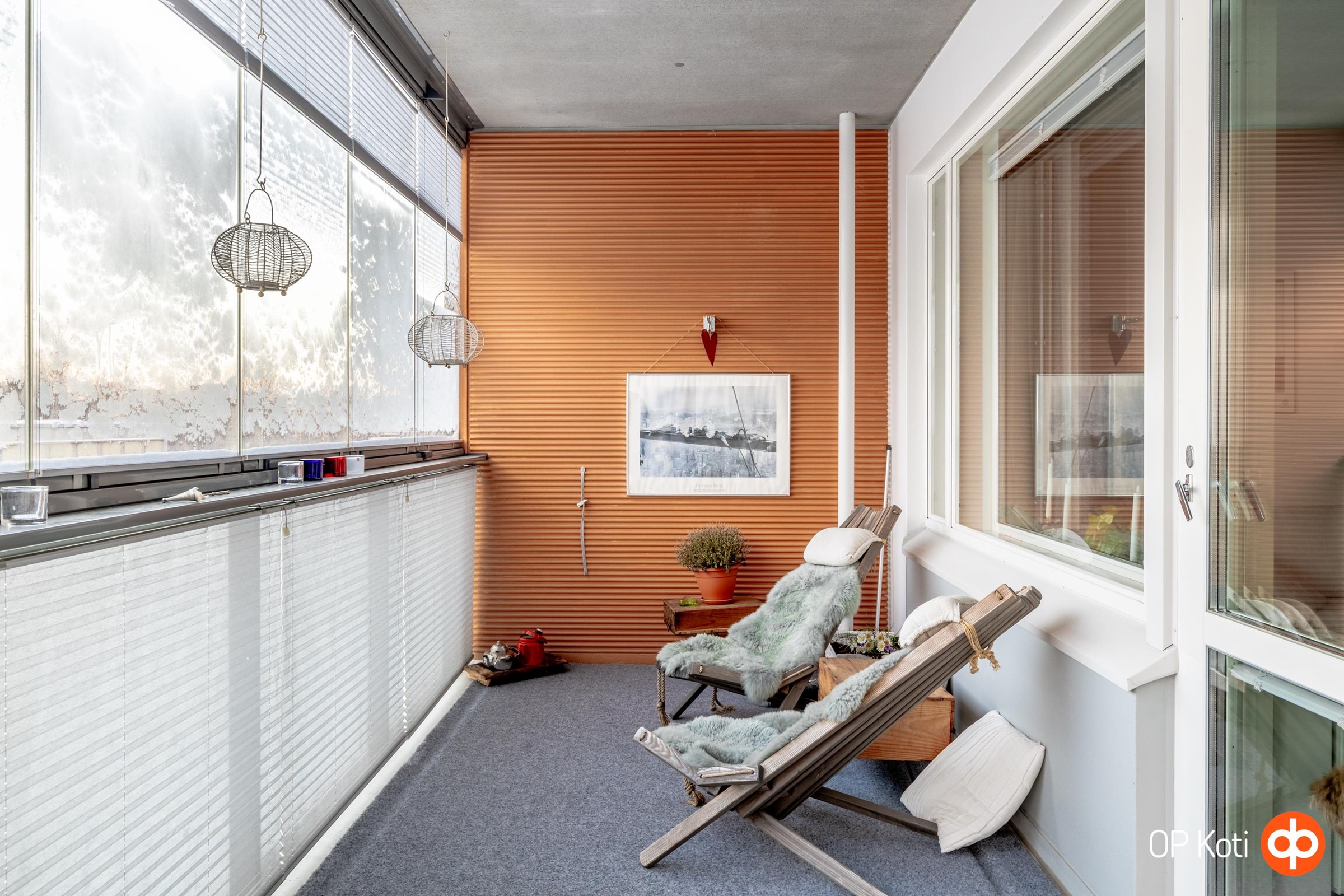 Asunnon sydämen muodostaa valoisa olohuoneen ja avokeittiön yhdistelmä, jossa suuret ikkunapinnat tuovat luonnonvalon kauniisti sisään. Tila on suunniteltu yhdessäoloon, mutta myös rauhalliseen arkeen. Kaksi erillistä makuuhuonetta mahdollistavat joustavan asumisen: sopii erinomaisesti pariskunnalle, pienelle perheelle tai työhuonetta kaipaavalle. Tilava kylpyhuone helpottaa arkea, ja säilytystilaa on suunniteltu käytännöllisesti. Lasitettu parveke ja parvekelasiverhot toimii lisähuoneena aikaisesta keväästä pitkälle syksyyn, ja toimii täydellisenä paikkana aamukahville tai iltahetkelle.