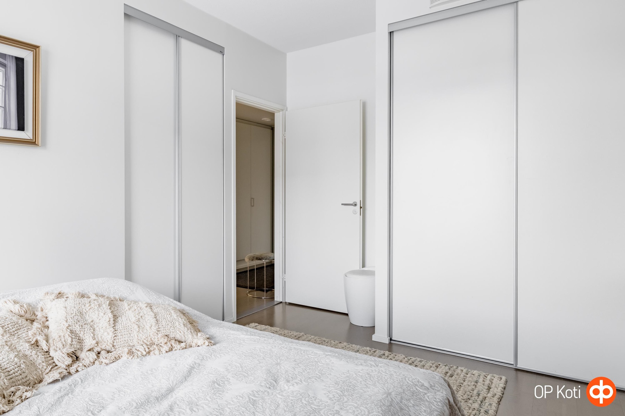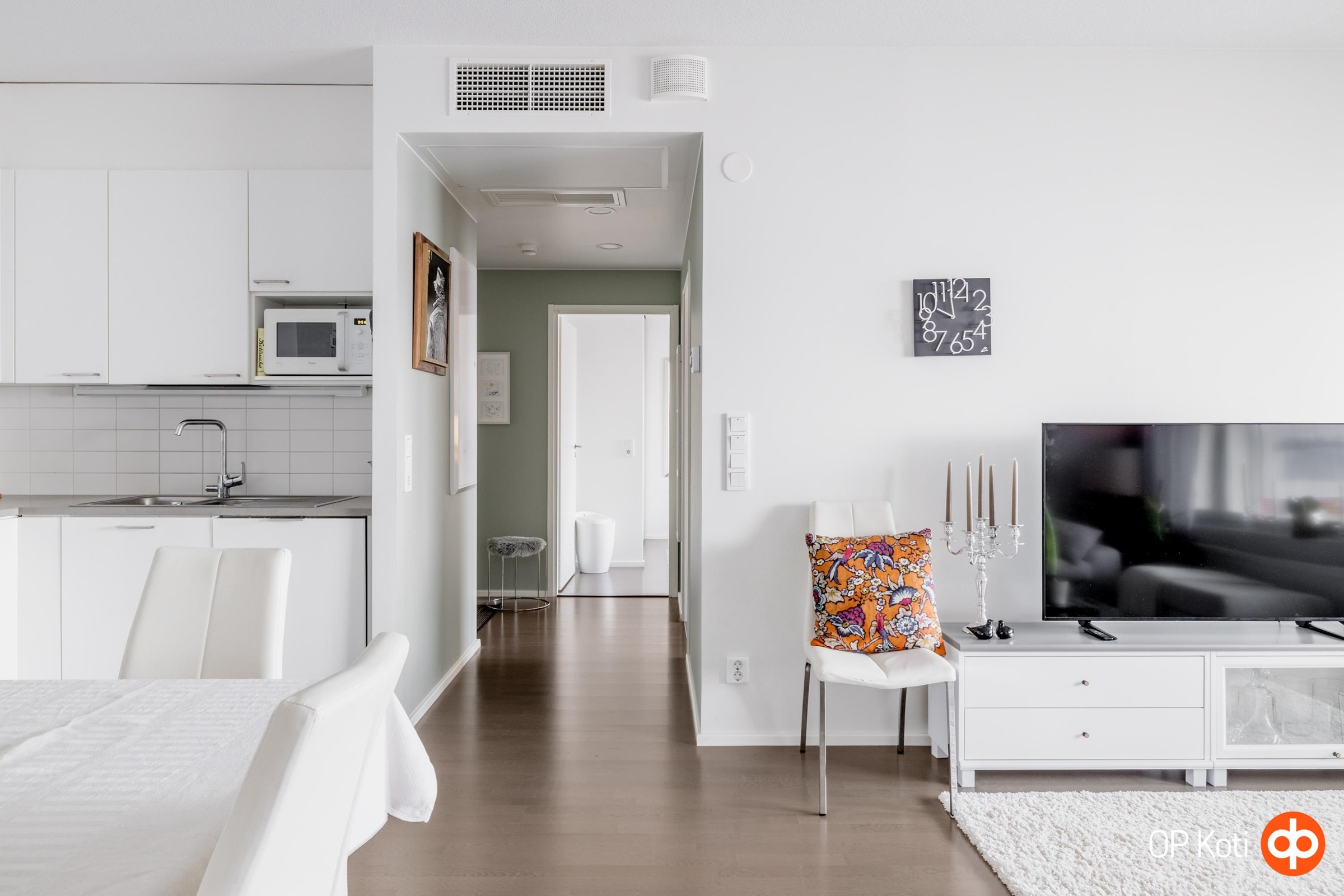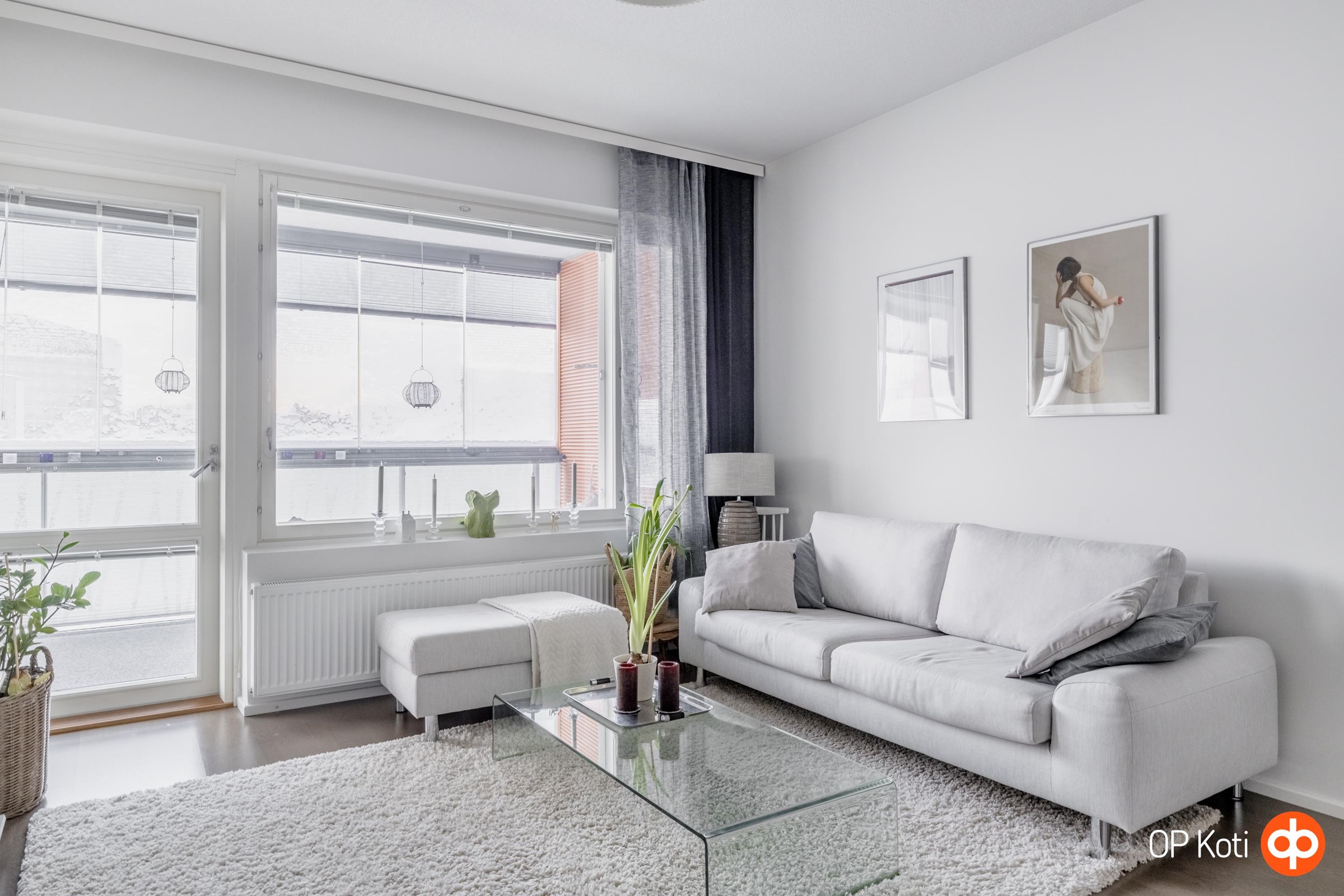 Asunnon sydämen muodostaa valoisa olohuoneen ja avokeittiön yhdistelmä, jossa suuret ikkunapinnat tuovat luonnonvalon kauniisti sisään. Tila on suunniteltu yhdessäoloon, mutta myös rauhalliseen arkeen. Kaksi erillistä makuuhuonetta mahdollistavat joustavan asumisen: sopii erinomaisesti pariskunnalle, pienelle perheelle tai työhuonetta kaipaavalle. Tilava kylpyhuone helpottaa arkea, ja säilytystilaa on suunniteltu käytännöllisesti. Lasitettu parveke ja parvekelasiverhot toimii lisähuoneena aikaisesta keväästä pitkälle syksyyn, ja toimii täydellisenä paikkana aamukahville tai iltahetkelle.