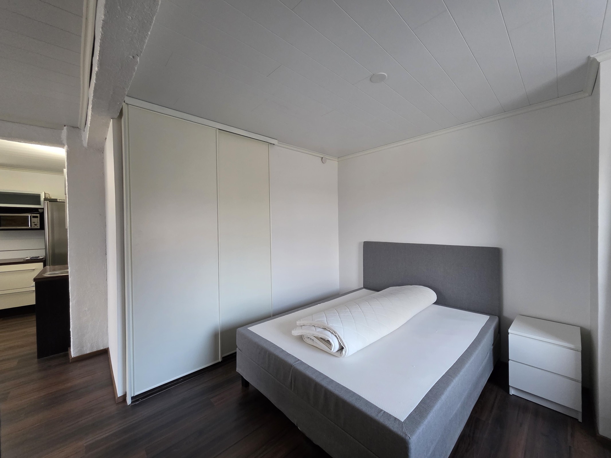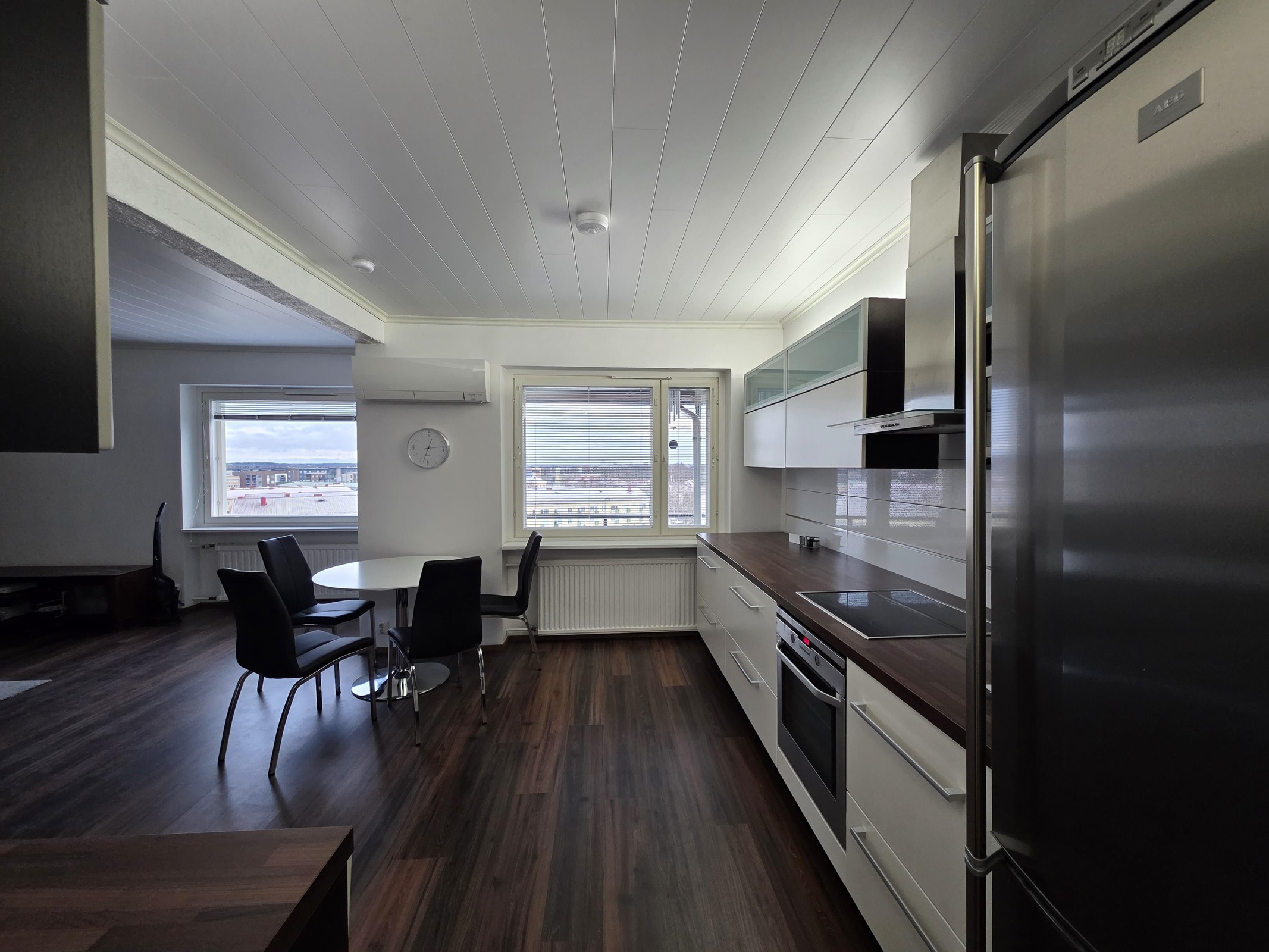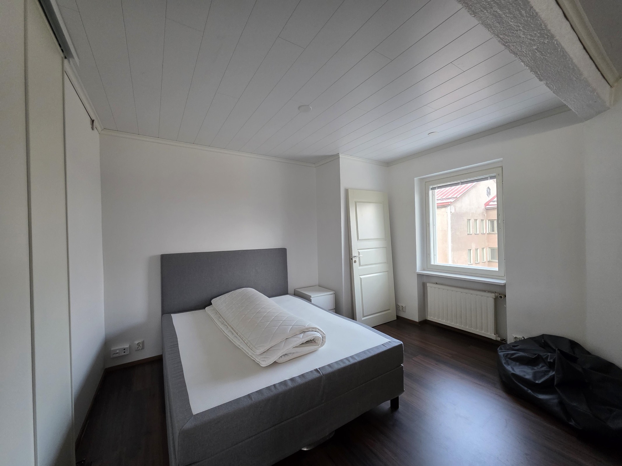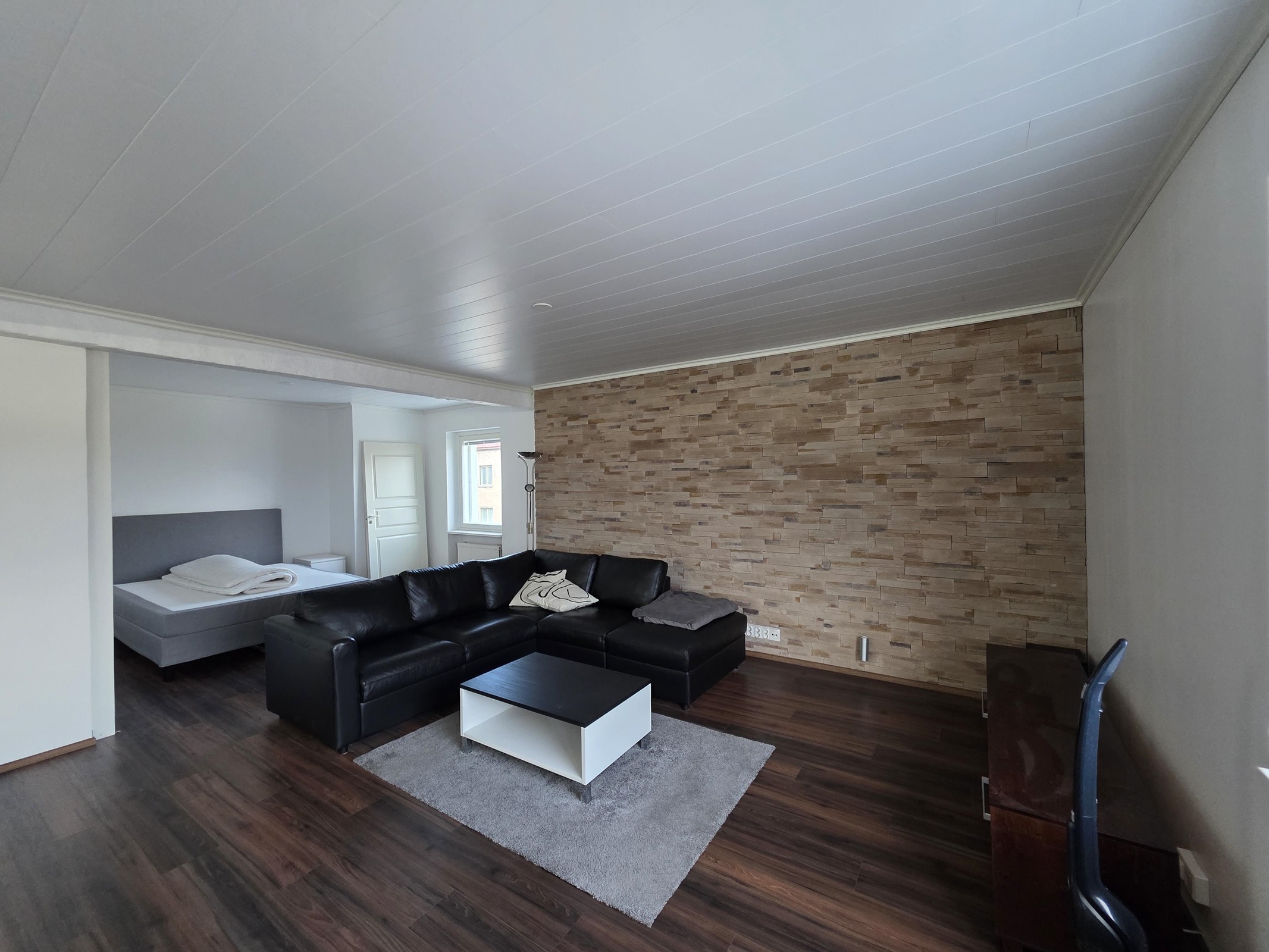 Lattia: tyylikäs laminaatti. Seinät: valkoinen maalattu.
