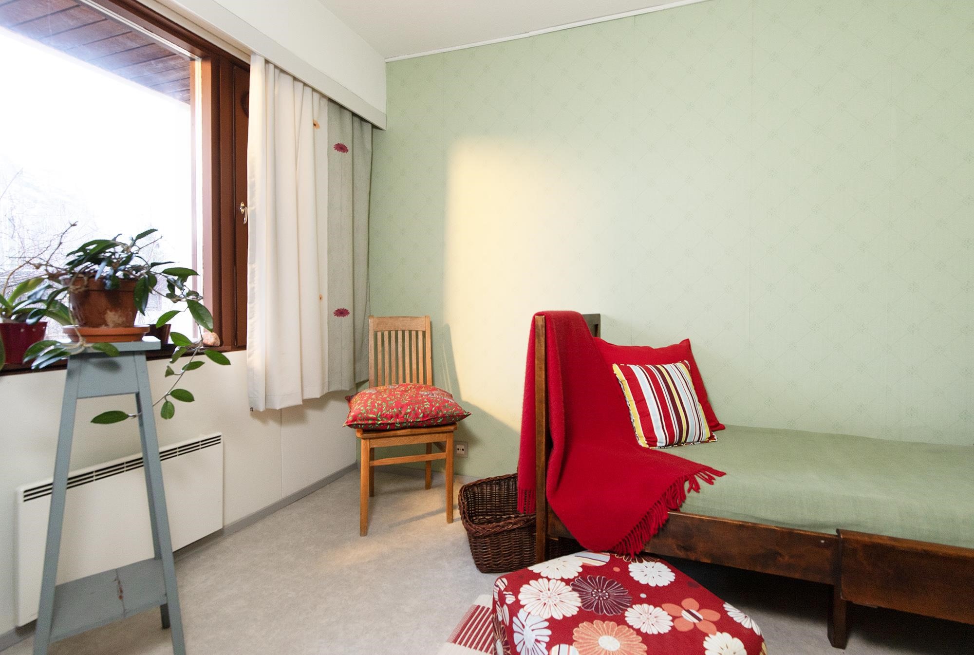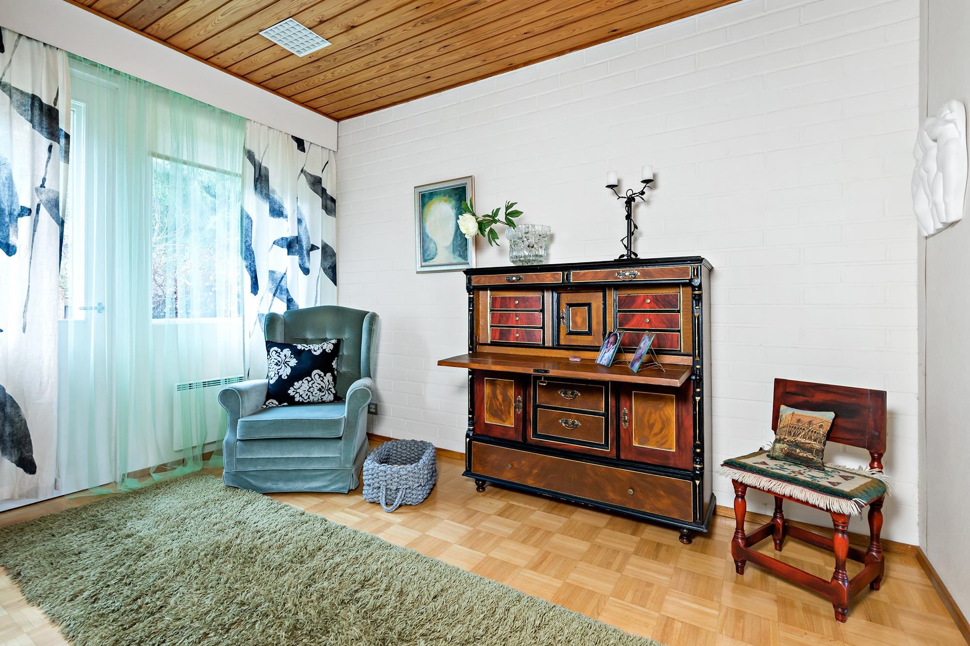Keittiö: parketti /maali/välitilassa kaakeli. Olohuone: parketti /maali. Makuuhuone 1: Muovimatto / tapetti. Makuuhuone 2: Muovimatto / lasikuitutapetti. Makuuhuone 3: parketti /maali /tapetti. Kodinhoitohuone: Muovimatto / maali. Sauna: Laatta / paneeli. Kylpyhuone: Laatta / kaakeli. Eteinen: Laatta / maali. Wc: Laatta / kaakeli.