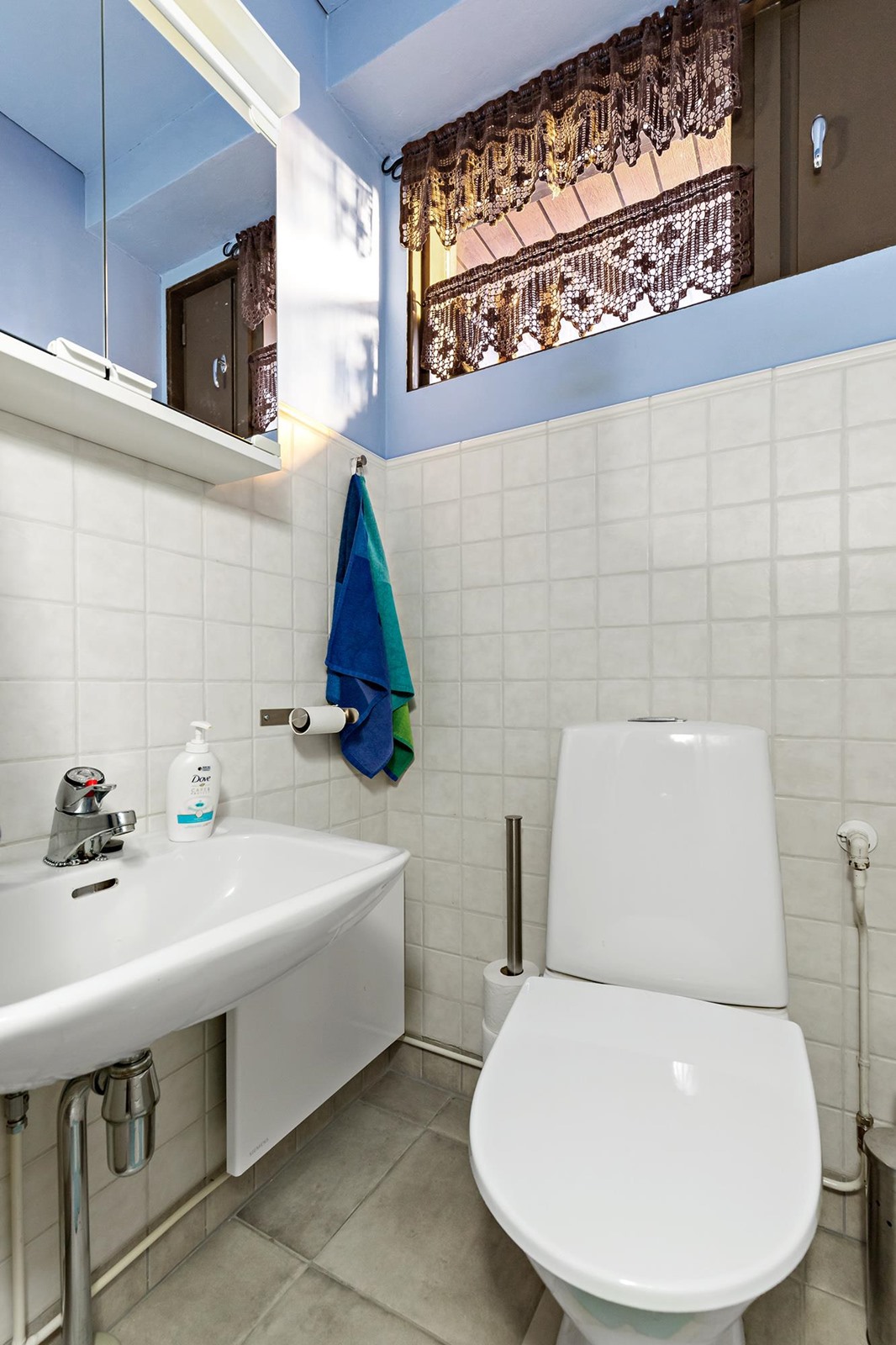 - Sauna, sähkökiuas, kylpyhuone, erillinen wc, suihku 2 kpl, peilit, peilikaappi, allaskaappi, pesukoneliitäntä, lattialämmitys, kiinteät valaisimet. Kylpyhuone on remontoitu 2000-luvulla.