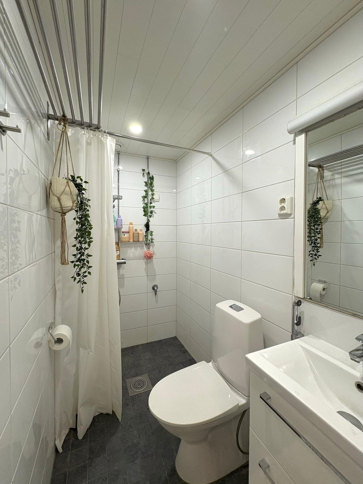 - Kylpyhuone, suihku, peilit, pesukoneliitäntä, kiinteät valaisimet.