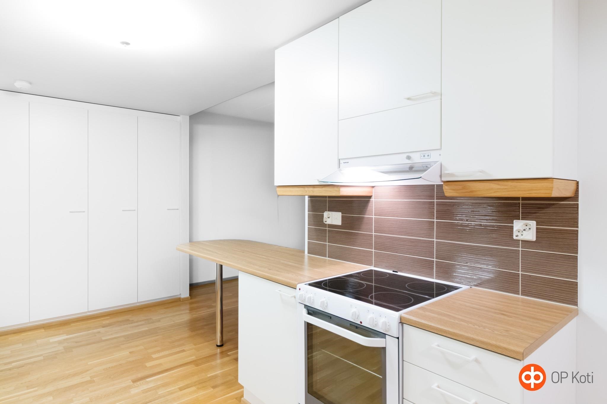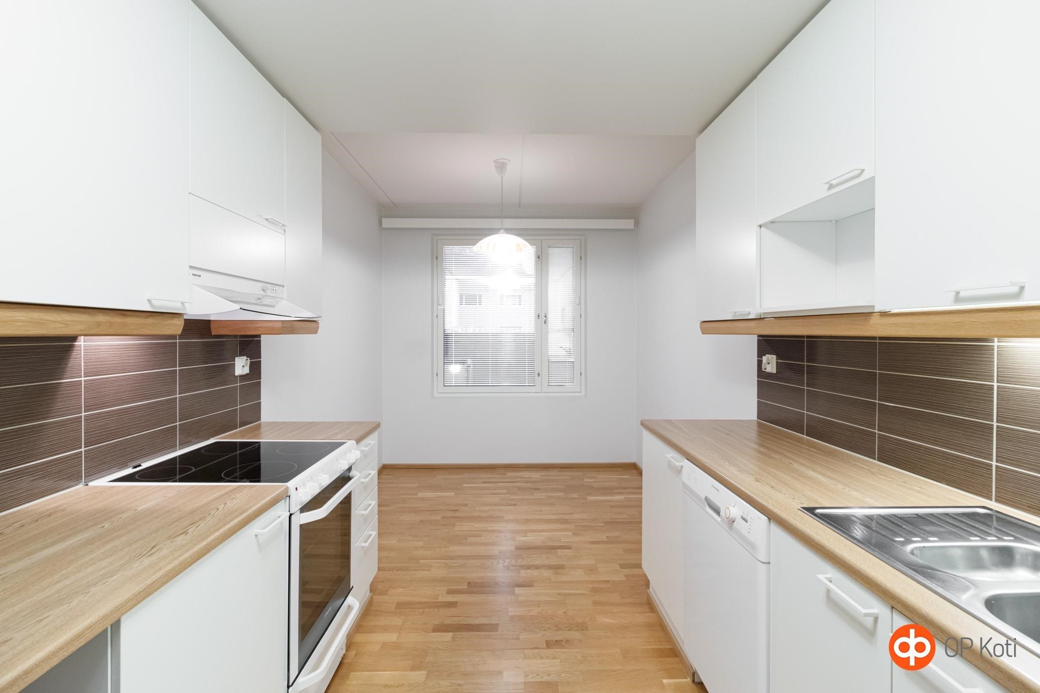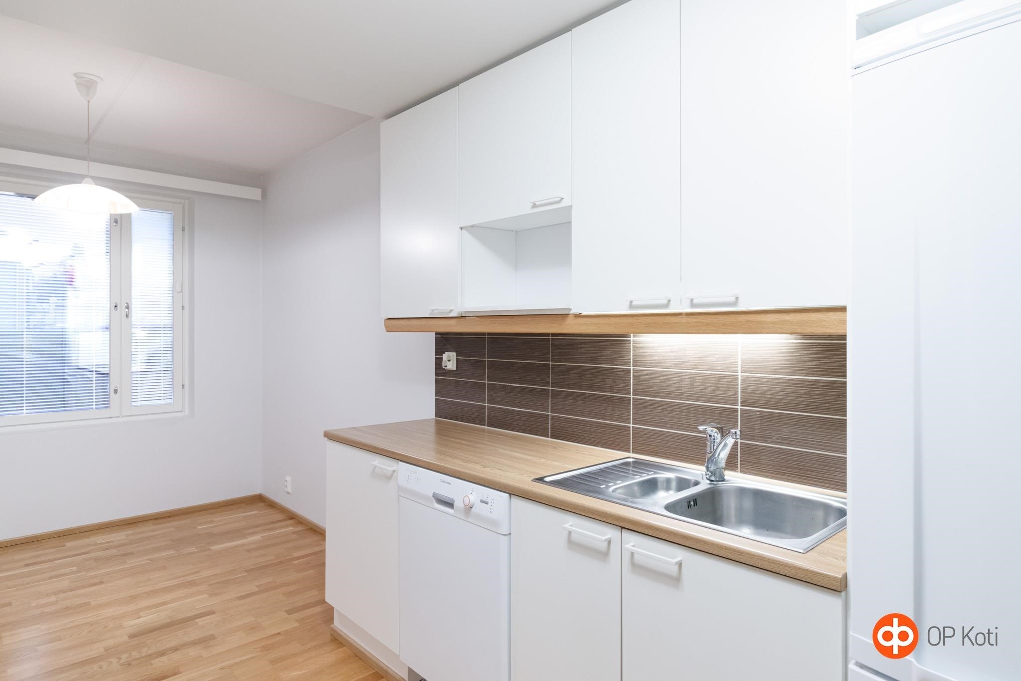- Jääkaappipakastin No frost, keraaminen liesi, liesituuletin, astianpesukone, kaapistot, kiinteät valaisimet.