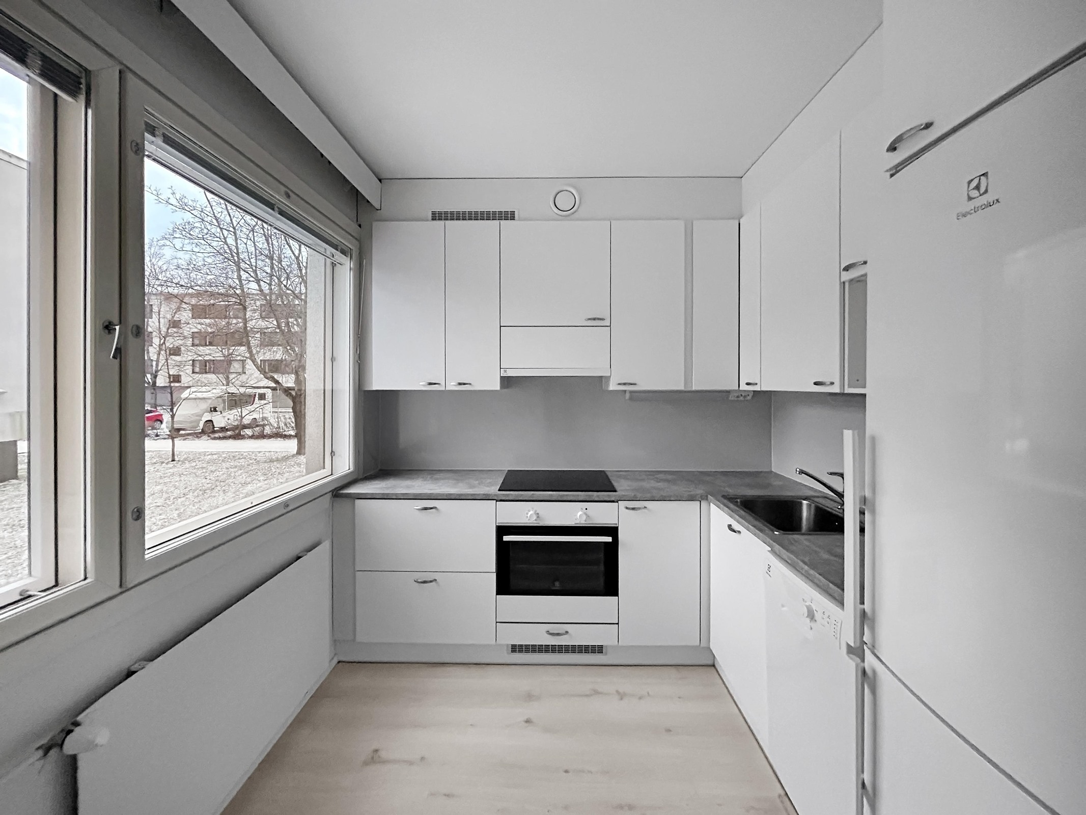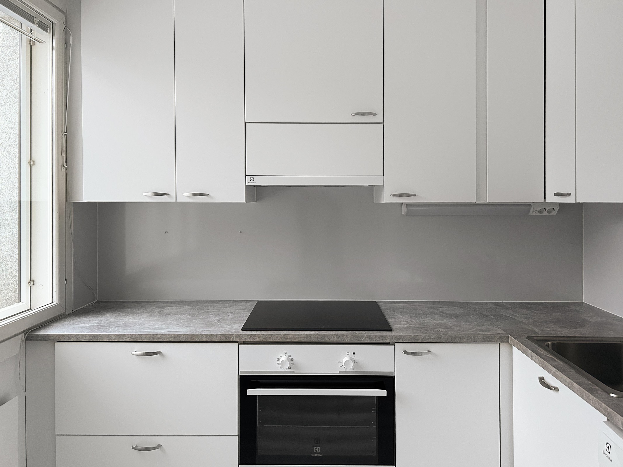 Tässä kauniisti remontoidussa yksiössä on siistit ja ajattomat pinnat, jotka tekevät kodista heti muuttovalmiin. Asunto sijaitsee ensimmäisessä kerroksessa, mutta ei maantasalla.