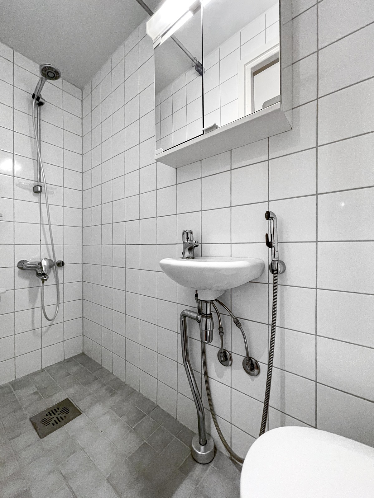 - Kylpyhuone, suihku, peilikaappi, lattialämmitys, kiinteät valaisimet.