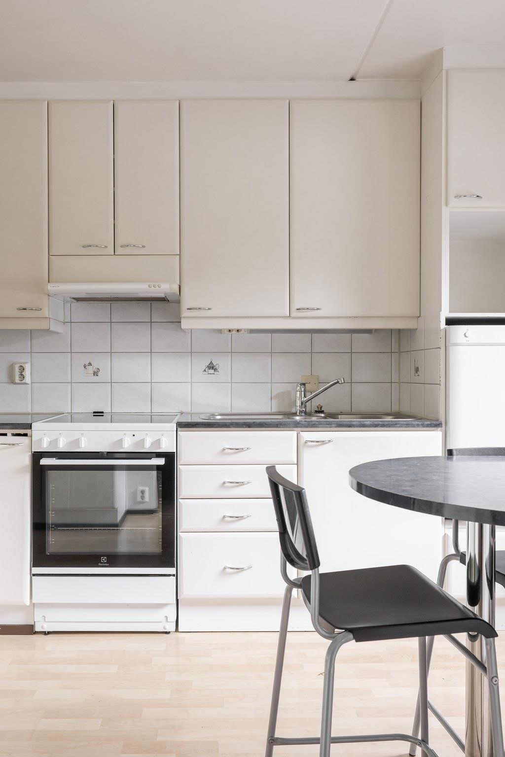 - Jääkaappi (2019), pakastekaappi (2019), keraaminen liesi, liesituuletin (moottori tuulettimessa), astianpesukone (2021), kaapistot, kiinteät valaisimet. Kiertoilmauuni (2017)