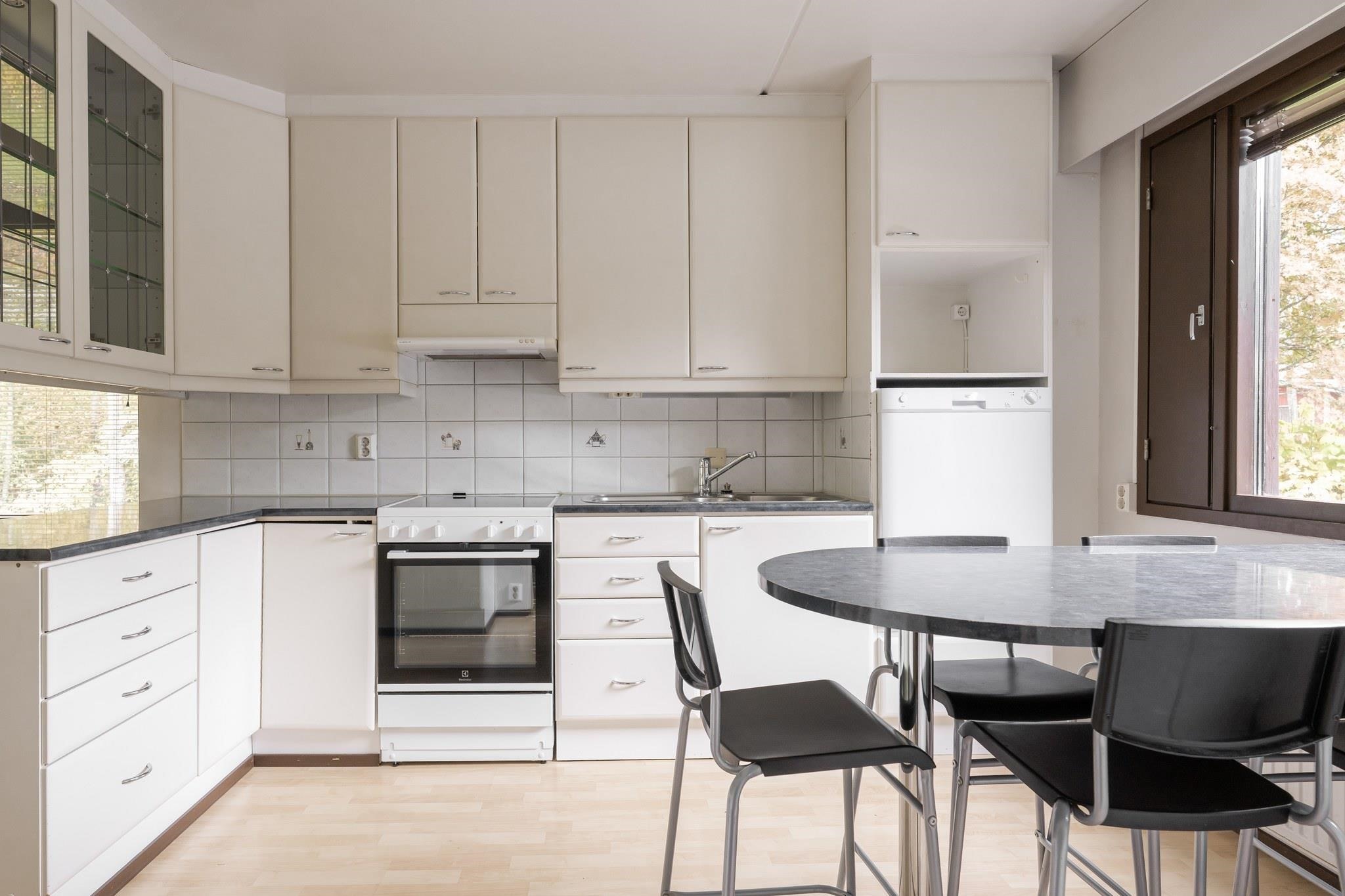 Asunnon yläkerrassa sijaitseva avara olohuone, yhdistettynä käytännölliseen keittiöön, luo täydelliset puitteet perheen yhteisille hetkille. Tunnelmallinen takka tarjoaa lämpöä ja viihtyisyyttä kylminä iltoina. Alakerran kolme makuuhuonetta ja saunaosasto tarjoavat omaa rauhaa ja rentoutumismahdollisuuksia. Säilytystilaa löytyy runsaasti, mm. iso vaatehuone helpottaa arjen järjestystä. Asunto Oy Kuukkarinne on valmistunut vuonna 1977 ja sijaitsee omalla tontilla. Lämmitys hoidetaan kaukolämmöllä ja lämpöä jakaa vesikiertoiset patterit. Jokaisella huoneistolla on oma autokatos ja autopaikka on asunnon edessä.