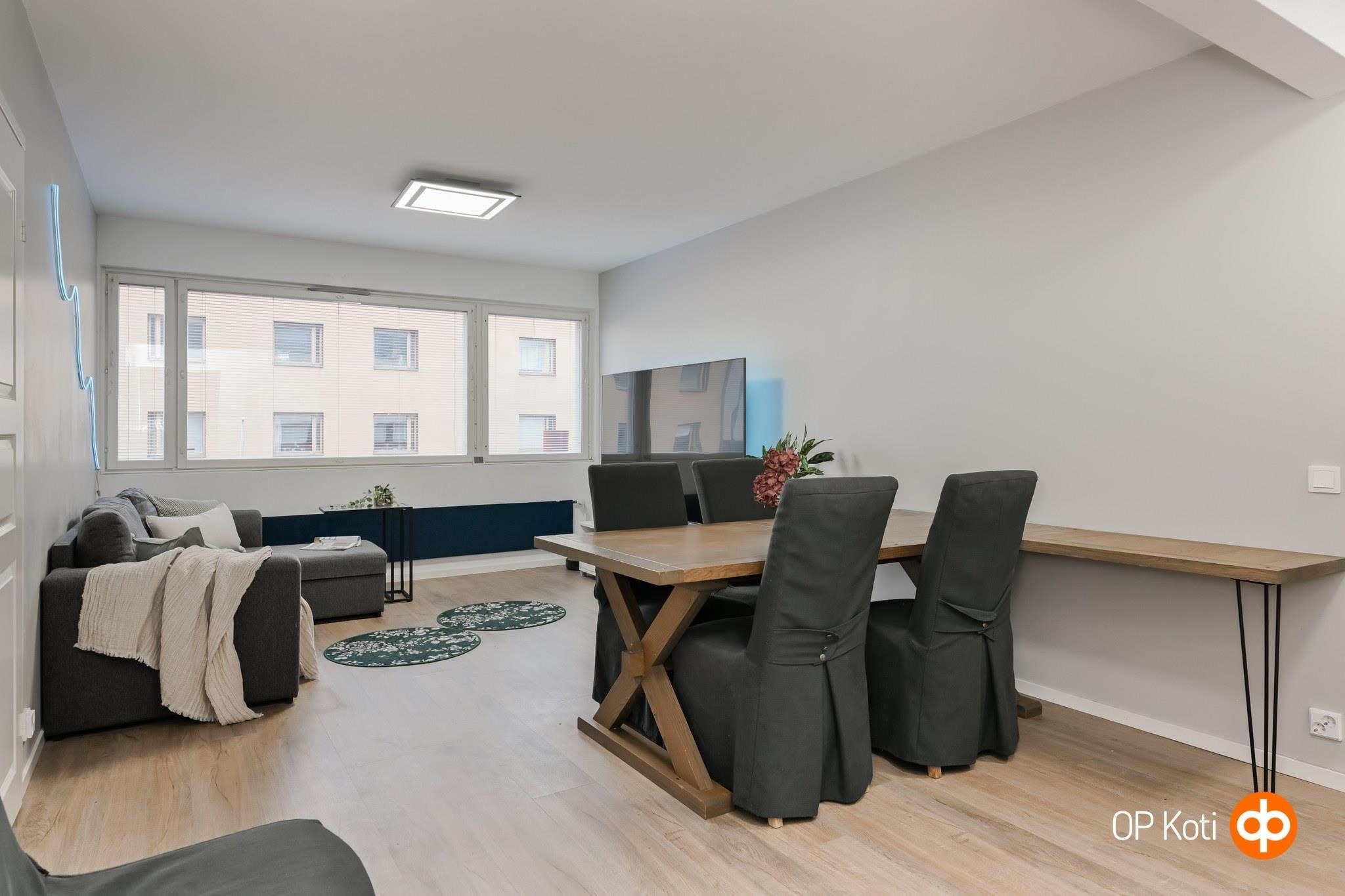 Huoneisto on kauniisti remontoitu vuonna 2021 ja tarjoaa miellyttävän asumiskokemuksen. Iso vaatehuone on todellinen arjen pelastaja, tarjoten runsaasti säilytystilaa ja pitämällä kodin siistinä ja järjestyksessä. Asunnossa on myös tehokkaasti käytetyt neliöt, joten hukkaneliöitä ei tarvitse miettiä.