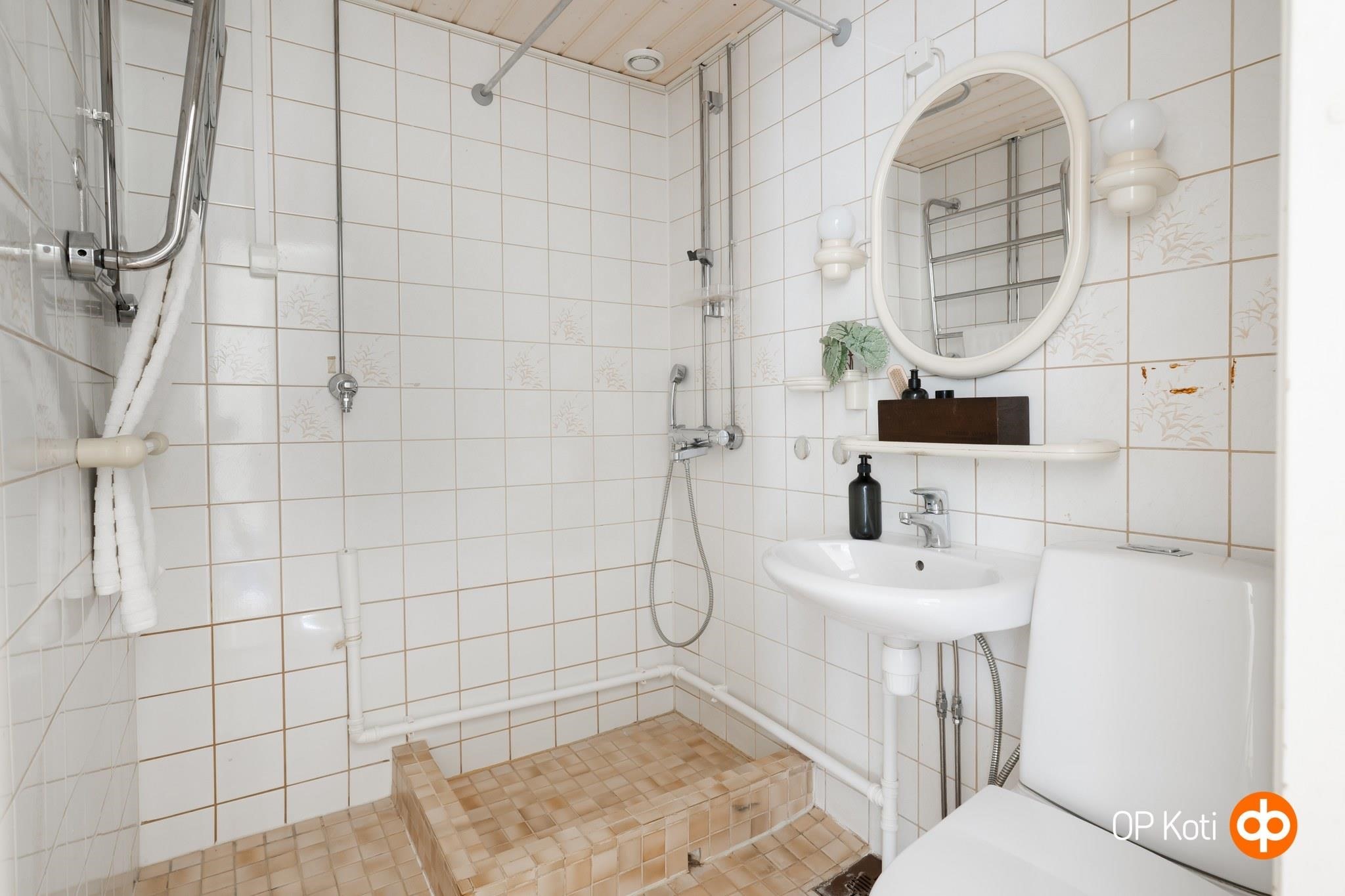 - Kylpyhuone, suihku, peilit, pesukoneliitäntä, kiinteät valaisimet.