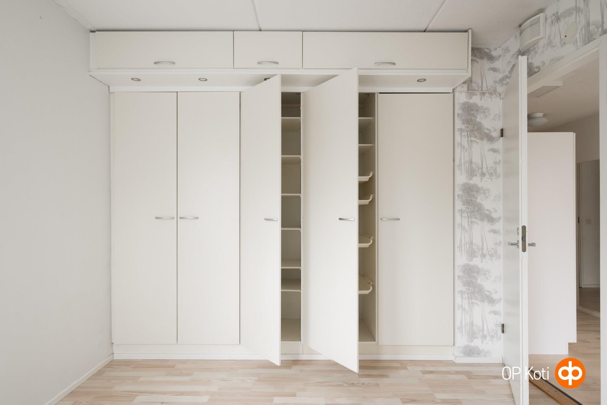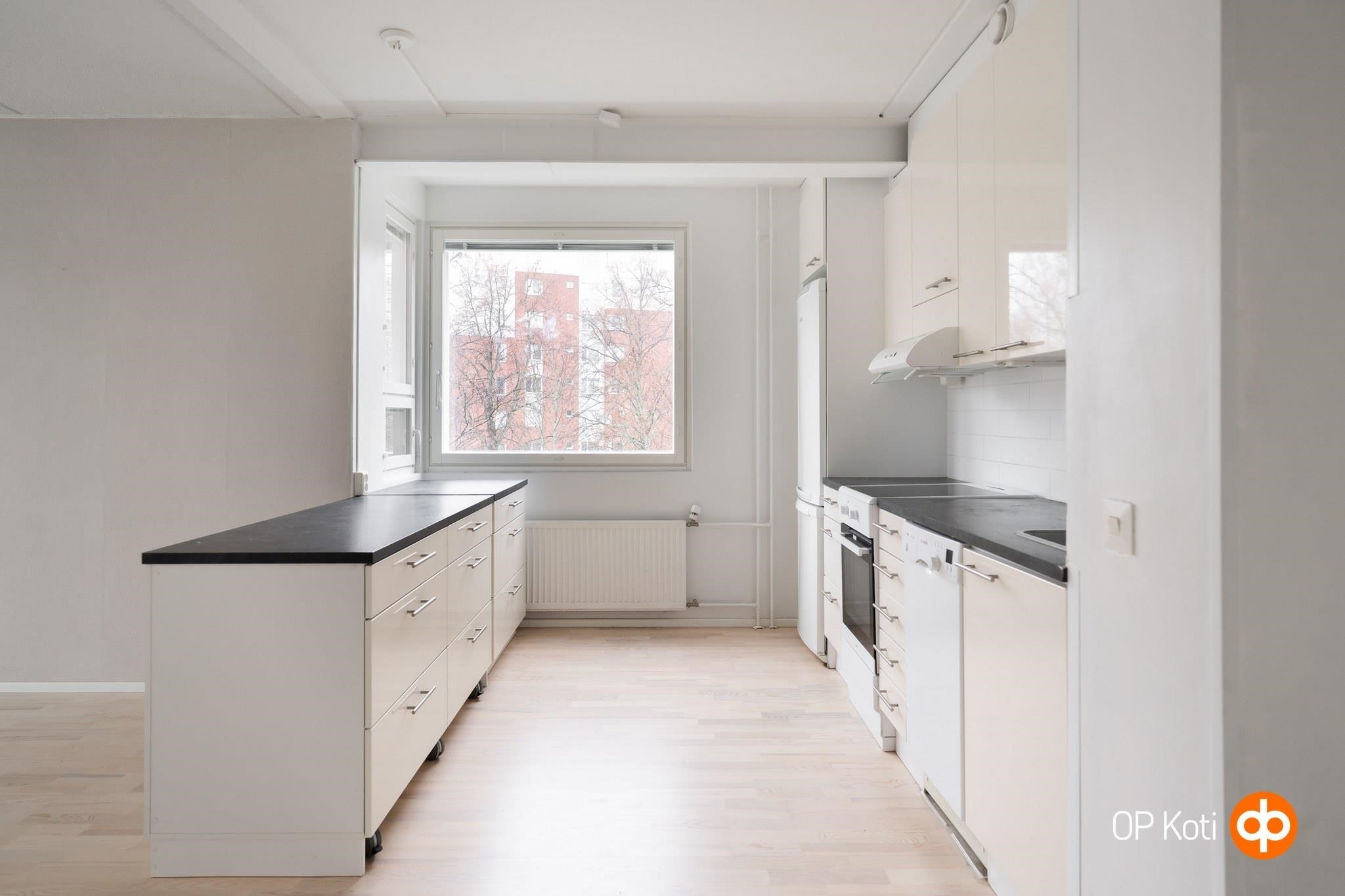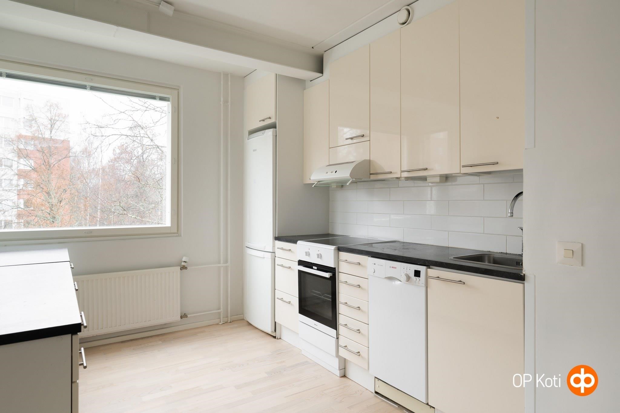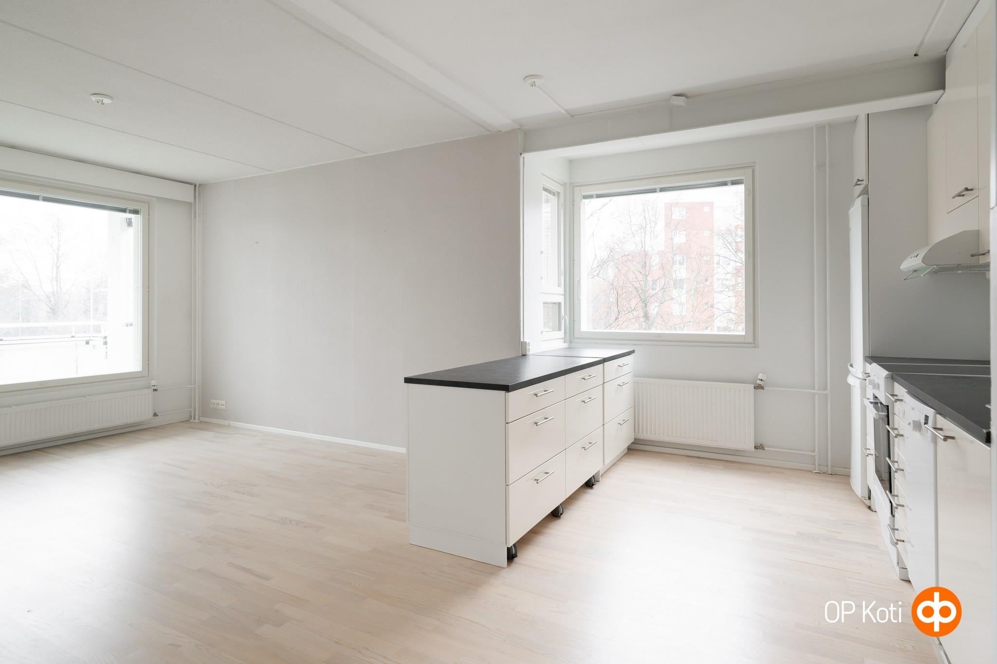 Asunnon tilava olohuone ja avokeittiö muodostavat yhtenäisen ja valoisan kokonaisuuden, jossa on parkettilattiat sekä modernit keittiökaapistot ja laadukkaat kodinkoneet, kuten induktioliesi, astianpesukone ja jääkaappipakastin. Vuonna 2011 remontoitu keittiö on avara ja toimiva. Makuuhuoneessa on reilusti säilytystilaa ja tunnelmaa tuovat tapetoidut sekä maalatut pinnat. Kylpyhuoneessa on suihku, pesukoneliitäntä, allaskaappi ja peilikaappi. Oma sauna on päivitetty vuonna 2022 ja siellä on uusitut lauteet sekä kiuas. Huoneistoon kuuluu kellari- sekä jäähdytetty kellarikomero ja arjen mukavuutta lisäävät mm. kiinteät valaisimet, sälekaihtimet sekä huoneistokohtainen pyykinpesukone ja kuivausrumpu.