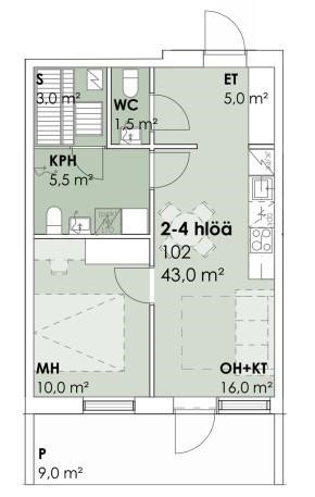 - Huoneistokohtainen koneellinen tulo-ja poistoilmanvaihtojärjestelmä lämmöntalteenotolla.