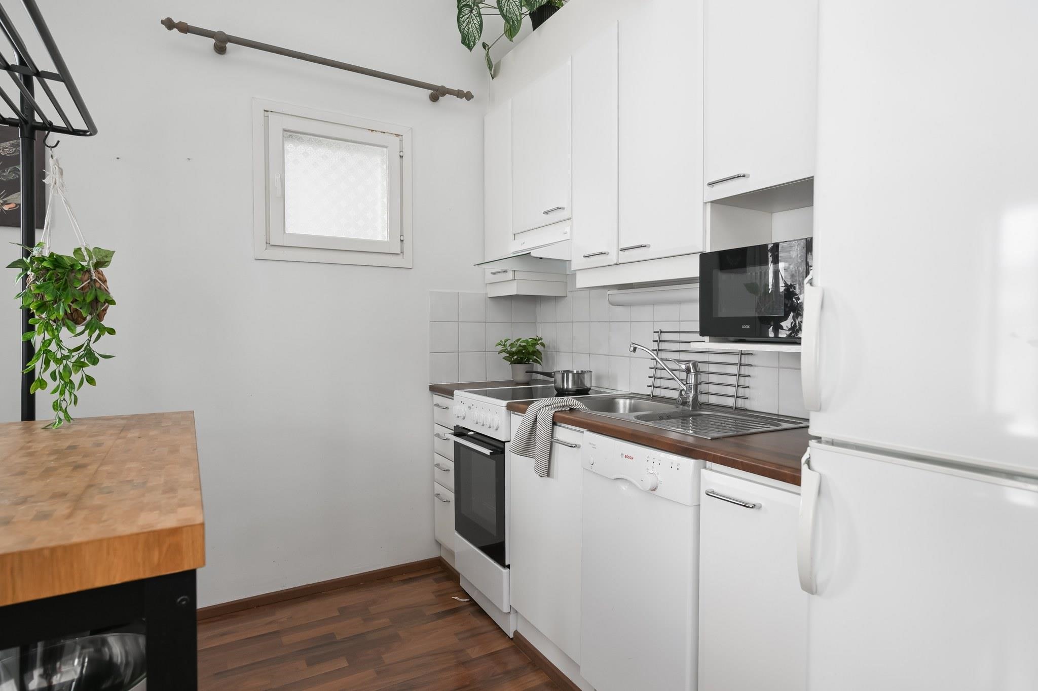 Asunnon 53,5 neliötä tarjoavat käytännöllisen huonejaon, jossa olohuoneen ja keittiön laminaattilattiat luovat yhtenäisen kokonaisuuden. Keittiö on varusteltu jääkaappipakastimella, keraamisella liedellä ja astianpesukoneella, tarjoten mukavuutta arkeen. Äskettäin uusittu kylpyhuone ja sauna tuovat ripauksen luksusta. Parveke tarjoaa tilan rentoutua ja nauttia raikkaasta ulkoilmasta.