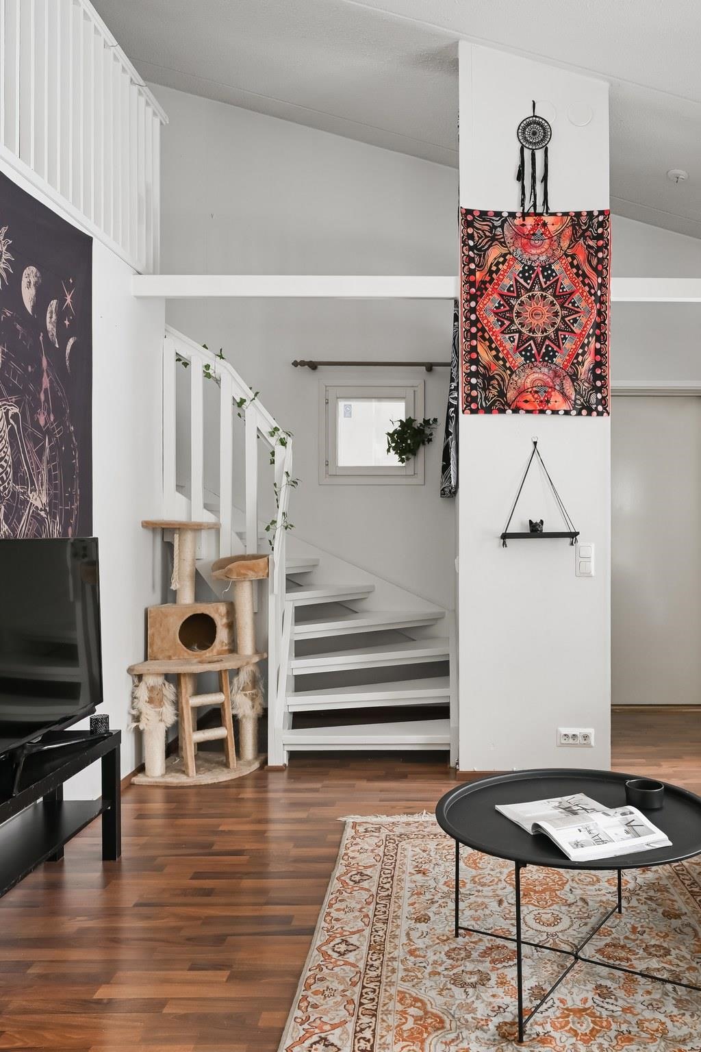Tervetuloa Halssilaan, Jyväskylän piilotettuun helmeen, jossa yhdistyvät rauhallinen asuinympäristö ja kaupungin palvelut. Tämä viehättävä kolmikerroksisen talon ylimmän kerroksen asunto tarjoaa jenkkityylisen loft asunnon kokemuksen, joka sopii täydellisesti pariskunnille kuin lemmikin kanssa eläjille. Täällä voit nauttia luonnon läheisyydestä ja silti olla vain kivenheiton päässä kaupungin sykkeestä.