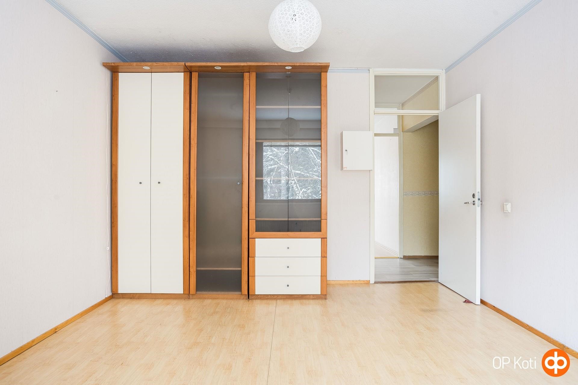 Makuuhuoneessa kaapisto. Erillinen vaatehuone.