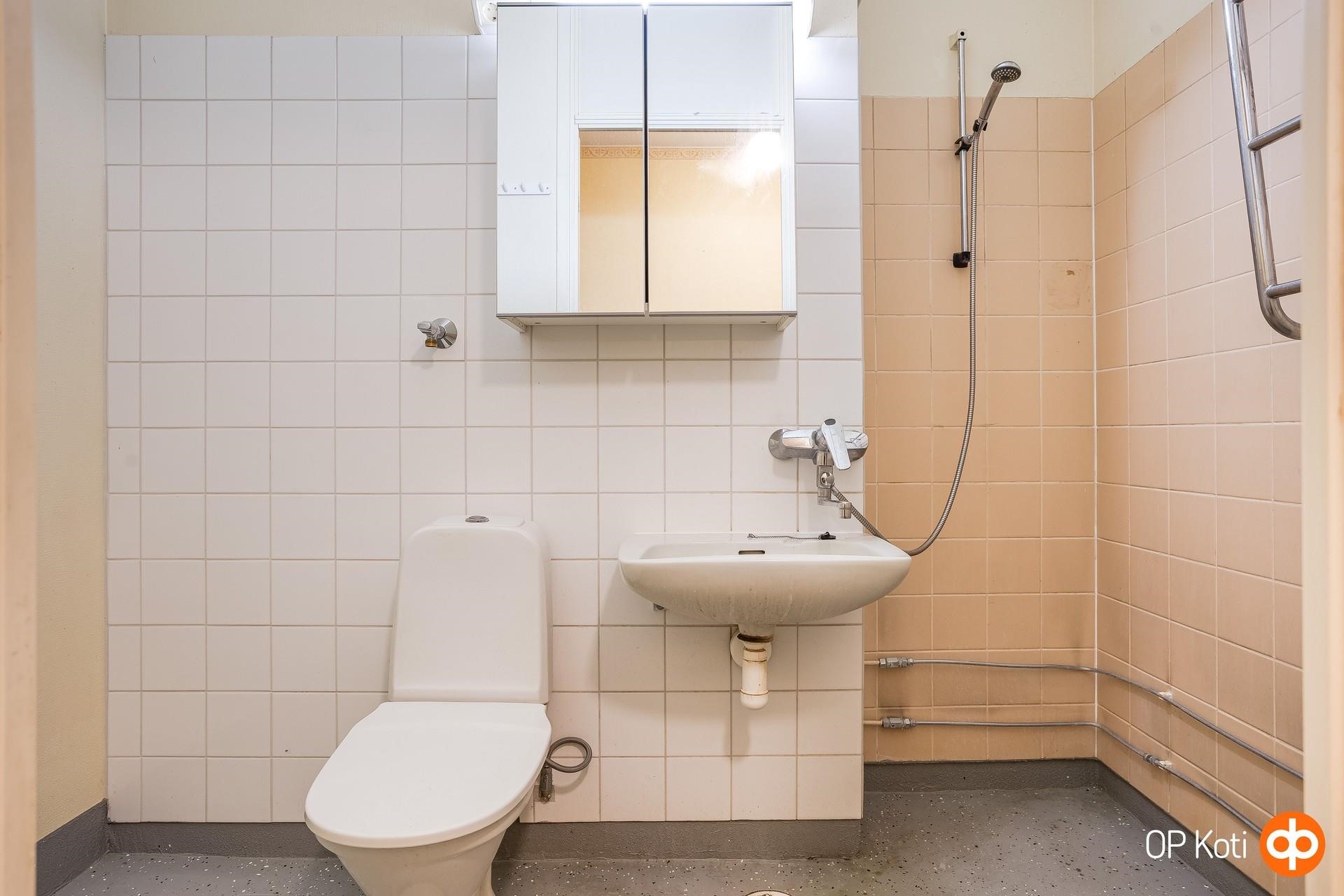 - Kylpyhuone, suihku, peilikaappi, pesukoneliitäntä, kiinteät valaisimet.