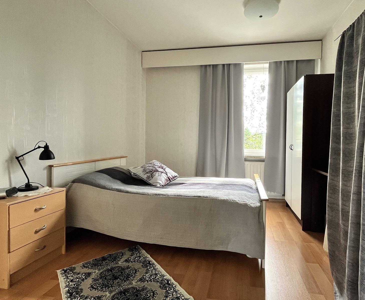 Asuihuoneiden lattioissa on laminaatti, keittiön seinät on maalattu. Olohuoneen ja makuuhuoneiden seinissä on tapetit. Kylpyhuone/wc:ssä on muovimattolattia ja kaakeloidut seinät.