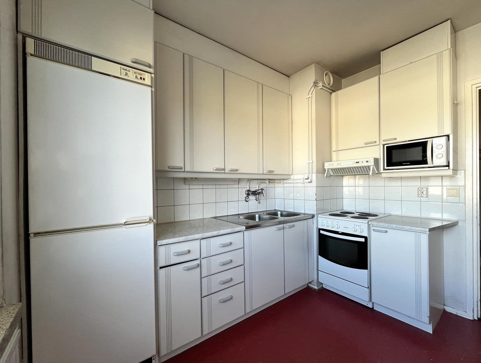 - Keittiön varusteet: jääkaappipakastin (vanha, pakastinosa ei toimi), sähköliesi, liesituuletin, kaapistot ja kiinteät valaisimet.