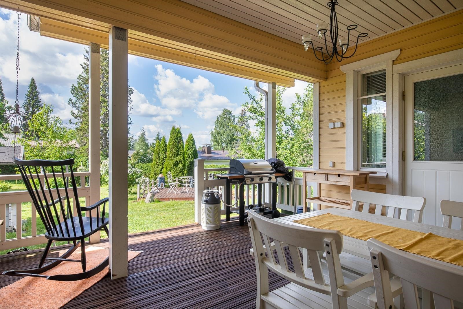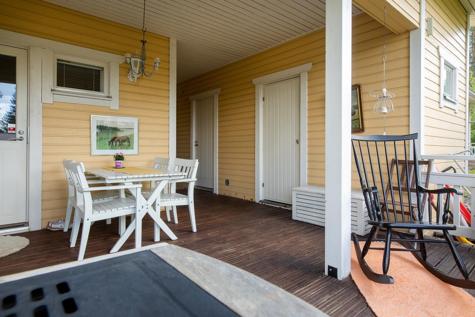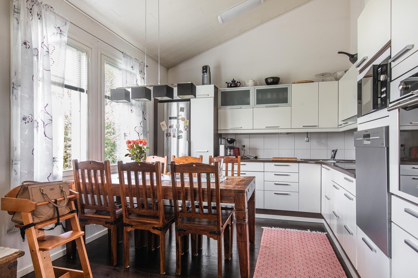 - Makuuhuoneiden ikkunat koilliseen sekä luoteeseen. Olohuone, keittiö ja terassi lähinnä lounaaseen.