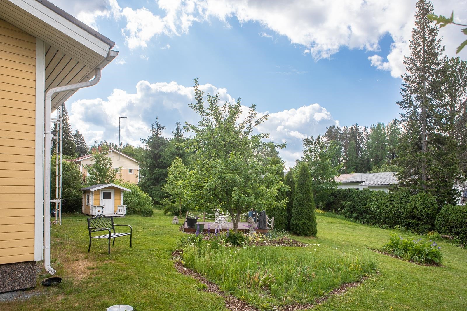 Palvelut: Jämsän keskustan tärkeimmät palvelut noin kilometrin säteellä ja lähimpään markettiin kävellen vain n. 450 m. Koulut: Jämsänjoen yhtenäiskoulu n. 1.6 km. Jämsän lukio n. 1.6 km. Ihastuttavassa pihapiirissä leikkimökki sekä valaistu patio ja ilmansuunta mitä parhain ilta-auringon suuntaan. Etupiha on sorastettu, muuten pääosin nurmikkopihaa jossa kauniit istutukset houkuttelevat kesäisin perhoset ilahduttamaan väriloistollaan. Liikenneyhteydet: Linja-autoasema n. 900 metriä, rautatieasema n. 2.1 km.