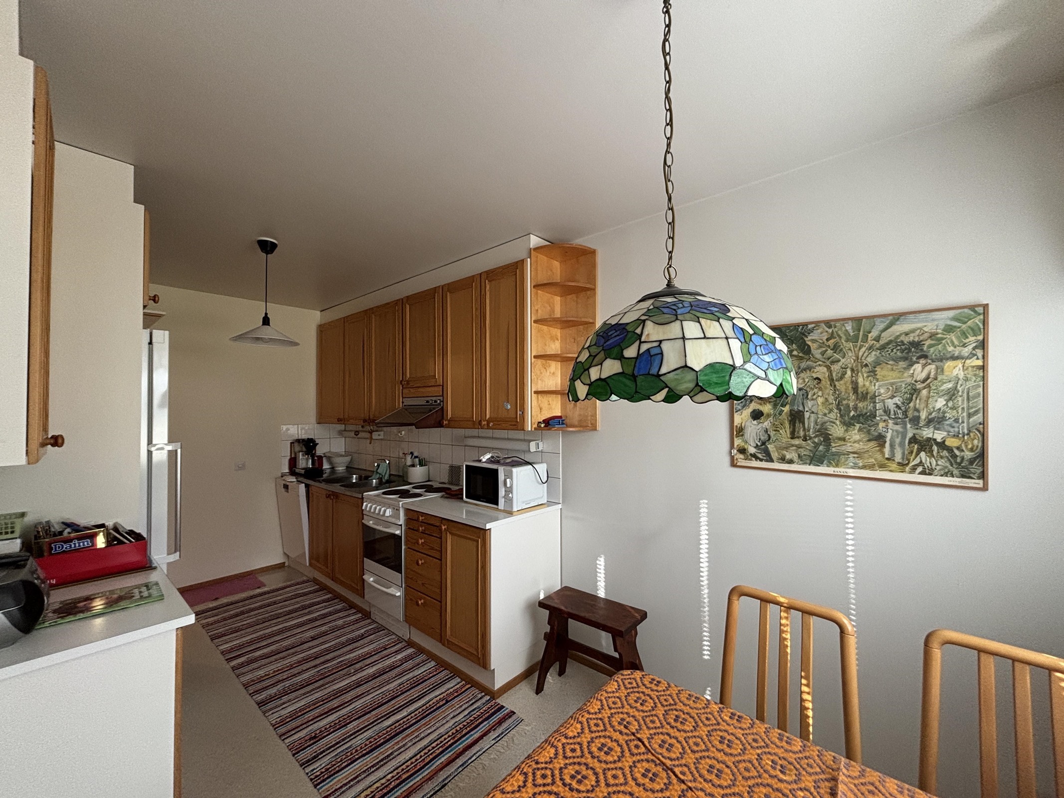 - Jääkaappi, lattialiesi, liesituuletin, astianpesukone, kaapistot.