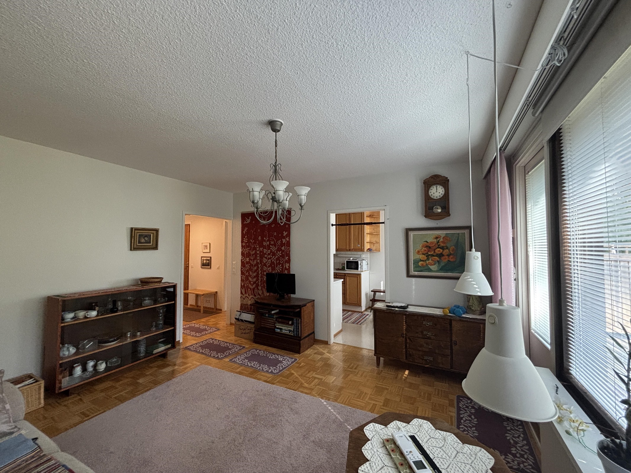- Olohuoneen ja keittiön ikkunat lähinnä etelän suuntaan ja makuuhuoneen ikkuna pohjoiseen.