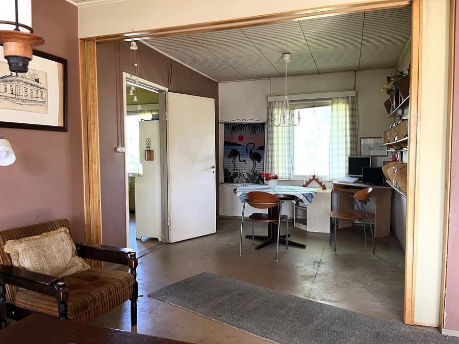 Tämä tilava talo on siirretty/rakennettu vuonna 1962 nykyiselle paikalle Hallin taajamaan. Rakennuksessa on kaukolämpö. Lisäksi keittiössä on alkuperäinen keskuslämmitysliesi ja saunassa puilla lämpiävä kiuas. Rakennuksessa on vuonna 1995 asennettu peltikate ja olohuoneen ikkunat on uusittu 1990-luvulla. Varaa oma esittelyaikasi ja remontoi tästä omakotitalosta mieleisesi koti. Puh. 010 256 2005.