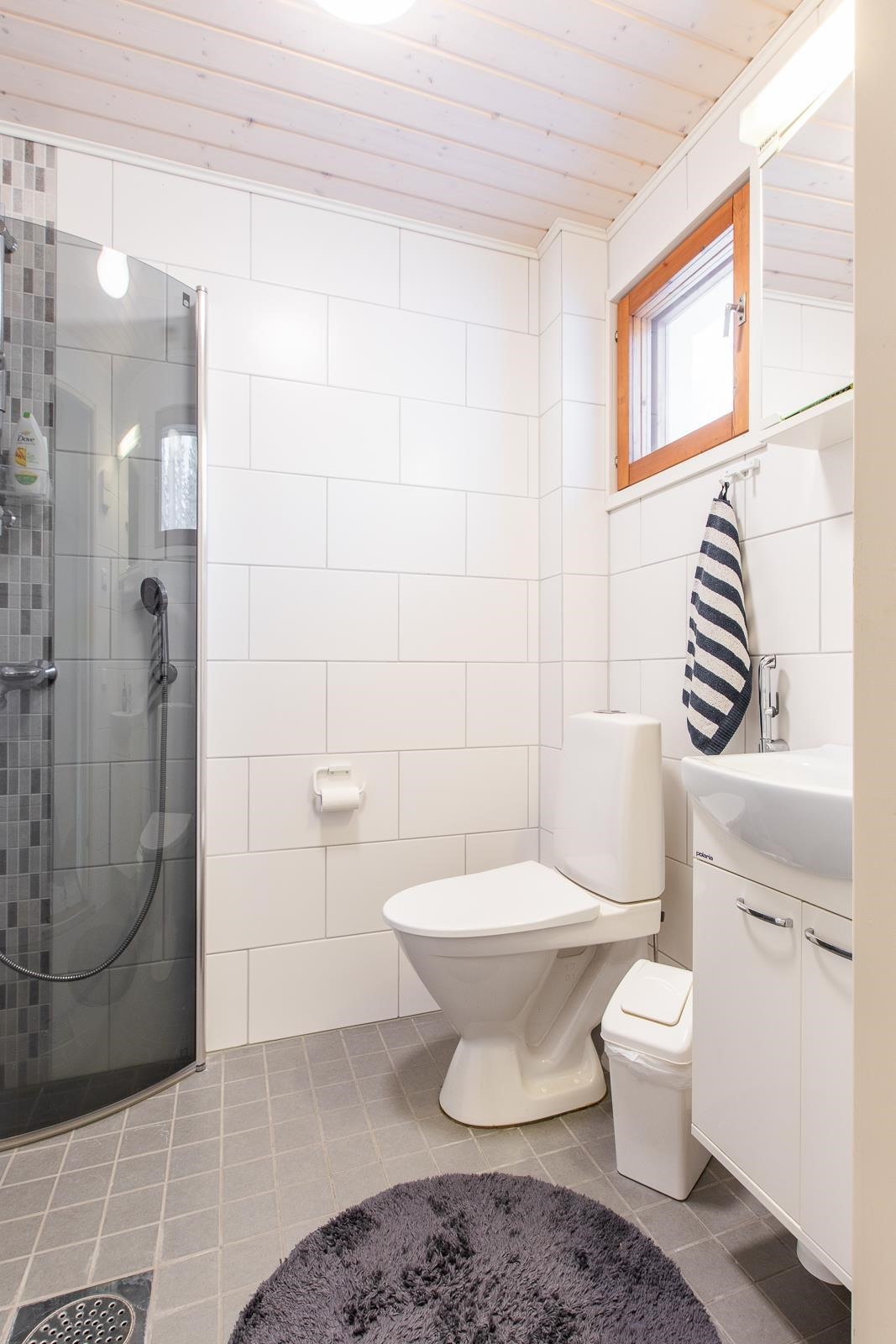 - Saunaosasto on remontoitu kokonaan 2017. Kylpyhuoneessa on suihku. Saunassa on sähköllä lämpiävä kiuas. Kylpyhuoneen vieressä on erillinen wc. Yläkerrassa on 2015 remontoitu wc, jossa on myös suihku. Alakerran ja yläkerran kylpyhuoneissa on lattialämmitys sähköllä. Alakerran tilava ala-aula on piirustusten mukaan kodinhoitohuone. Ko tilassa on puuhella/leivinuuni ja liukuoven takana tilava paikka pyykinpesukoneelle ja muulle kodin vaatehuollolle. Kylpyhuoneessa on laatoitus sekä seinissä että lattiassa. Saunassa on laatoitus lattiassa ja seinissä paneeli. Myös yläkerran kylpyhuoneessa on laatoitus sekä seinissä että lattiassa.