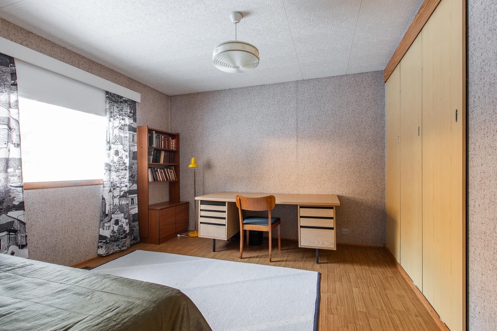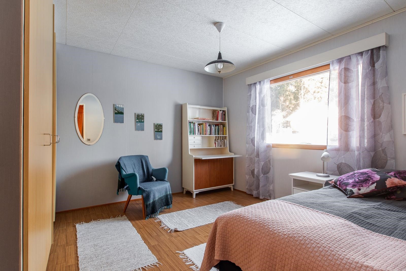 Asuintilojen lattioissa on parketti tai helppohoitoinen muovimatto. Asuintilojen seinissä on tapetti/maali/paneeli.