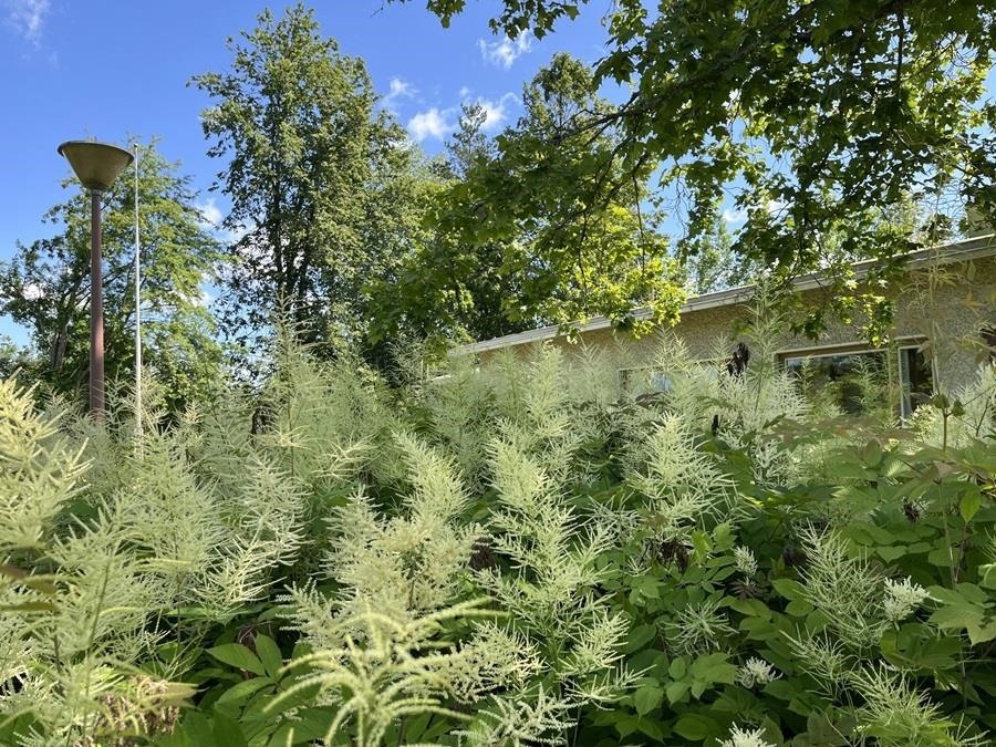 - Vehreä ja puustoinen tontti oma 2000 neliön tontti. Sisääntulopihan puolelta tasainen maasto. Tontilla on vanhoja perennoja, viinimarjapensaita ja istutuksia.