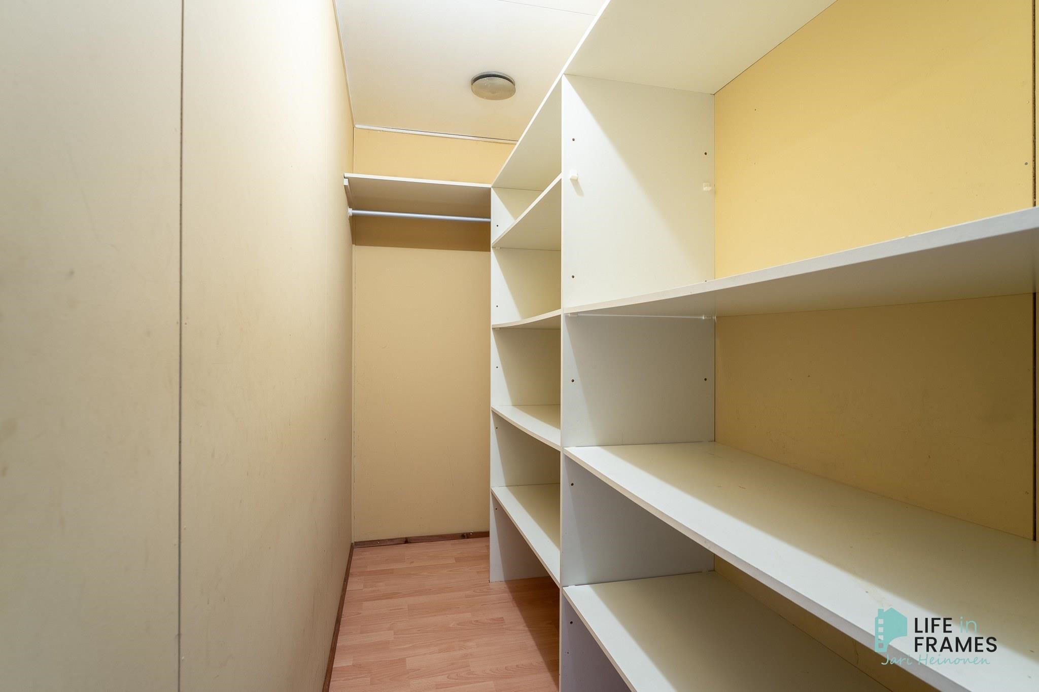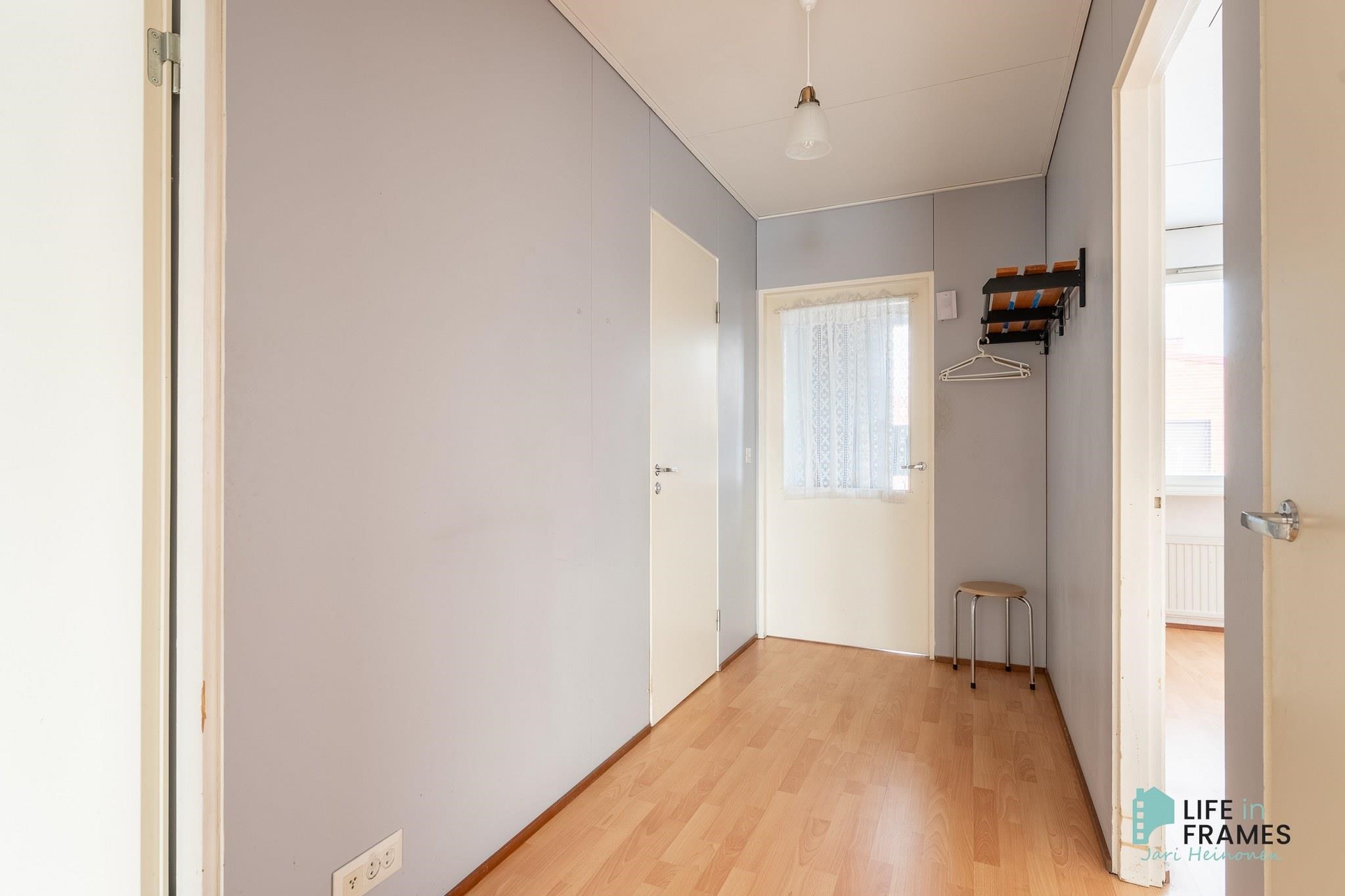 Keittiö: laminaattilattia, seinät maali, välitilassa kaakeli. Olohuone: laminaattilattia, seinät tapetti. Makuuhuone 1: laminaattilattia, seinät tapetti. Sauna: laattalattia, paneeliseinät. Kylpyhuone: /wc: laattalattia, kaakeliseinät. Eteinen: laminaattilattia, seinät maali. Vaatehuone: laminaattilattia, seinät maali.