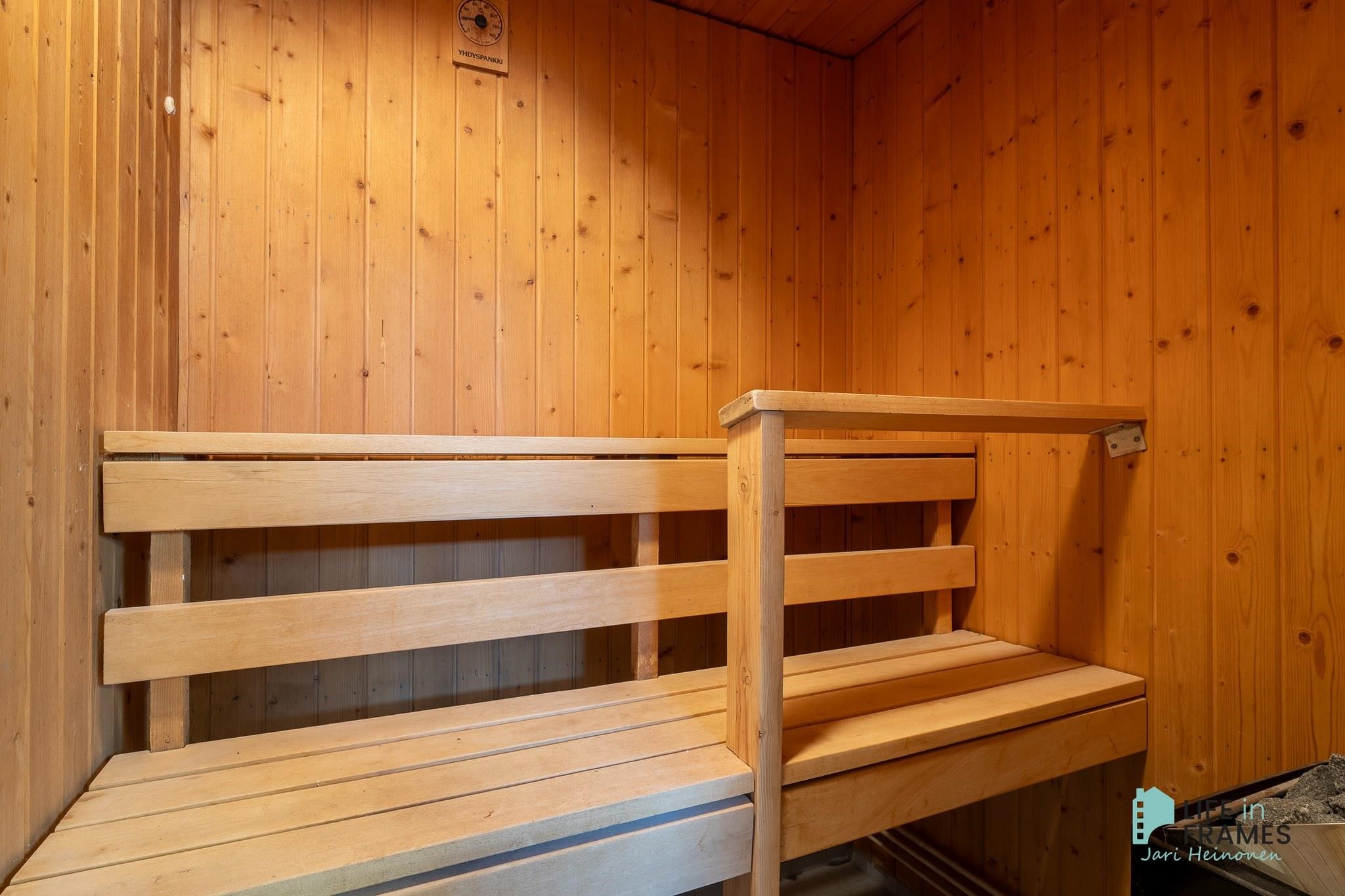 - Sauna, sähkökiuas (noin v. 2020, vähän käytetty), kylpyhuone, suihku, peilit, pesukoneliitäntä, kiinteät valaisimet.